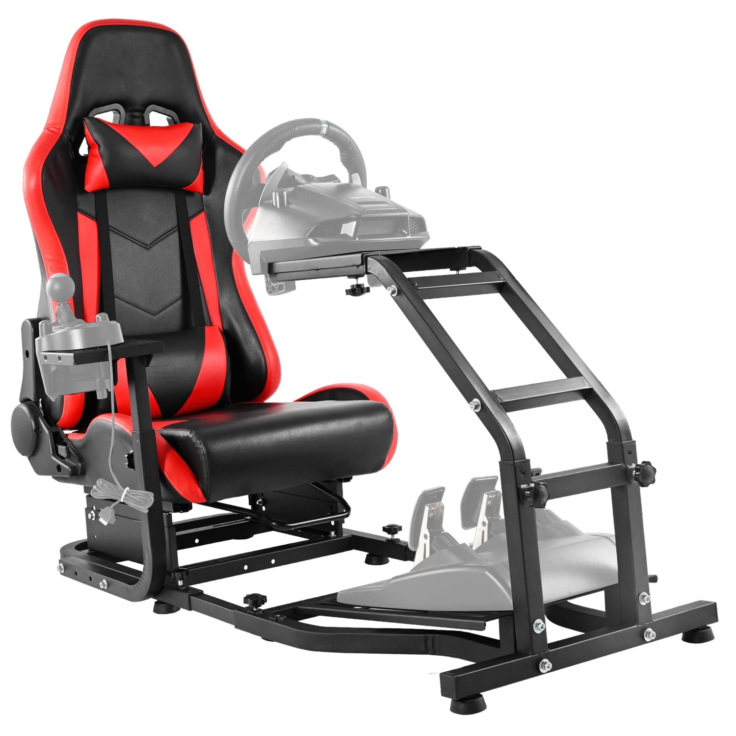 Adjustable Racing Simulator Cockpit Stand with Support Arms with Red Racing Seat Fit for Logitech G29 G920 G923,Steering Wheel Shifter Pedal and Seat Not Included