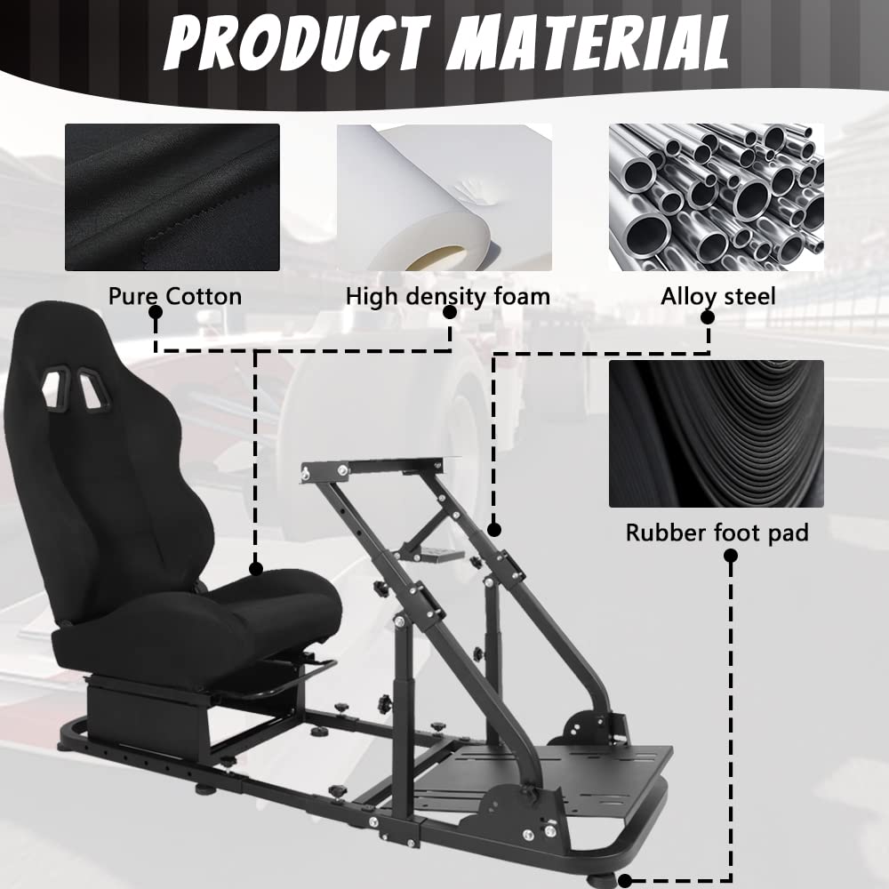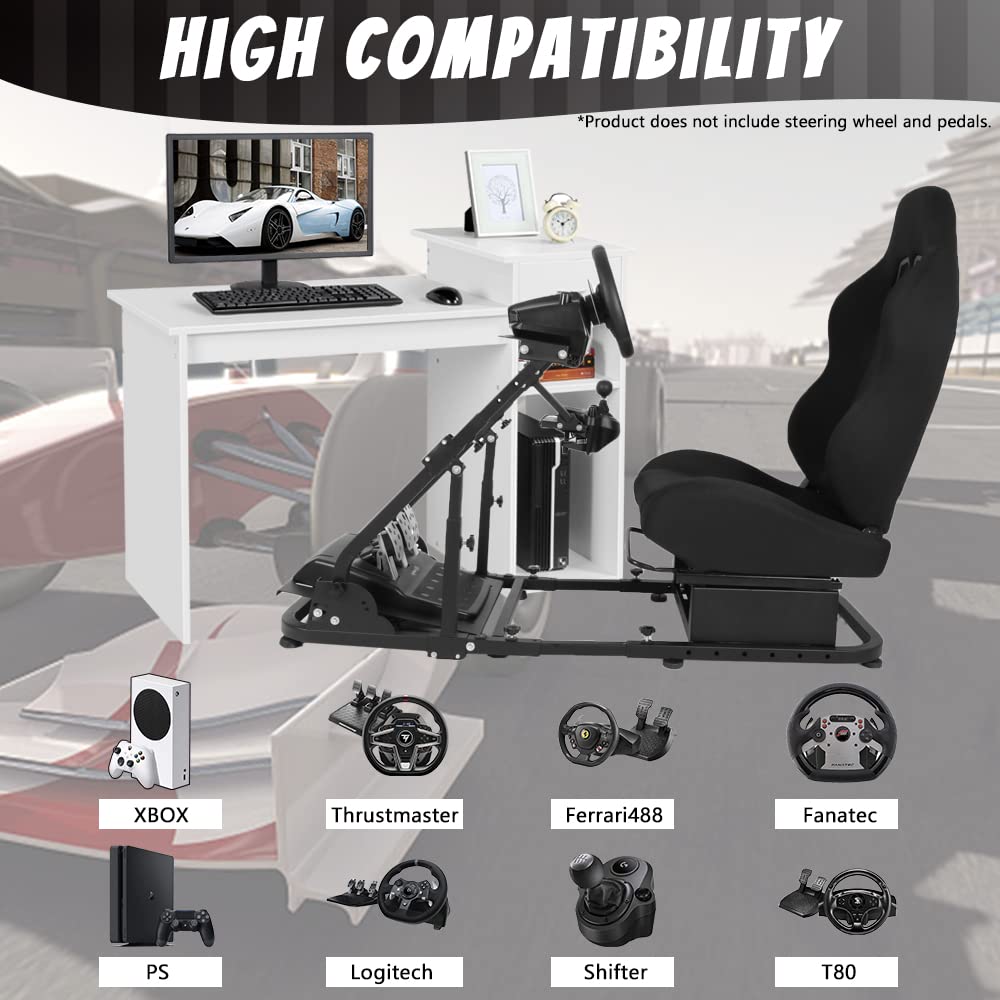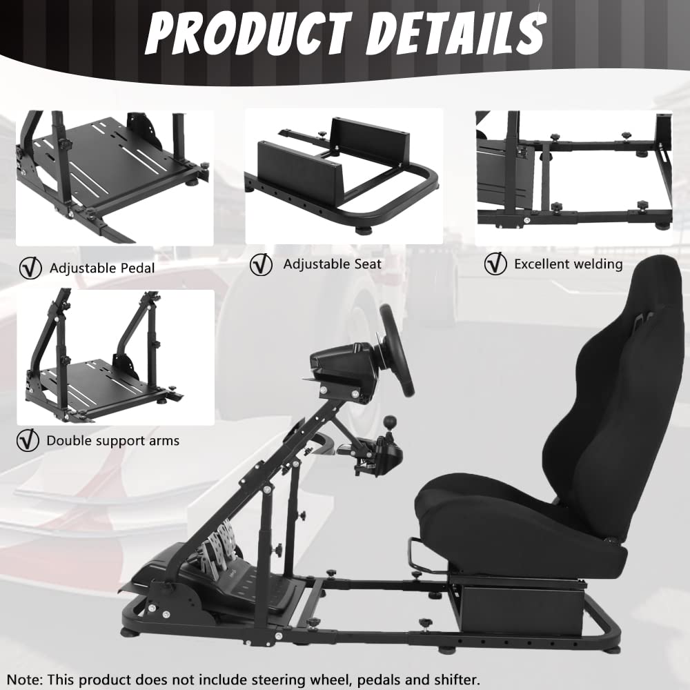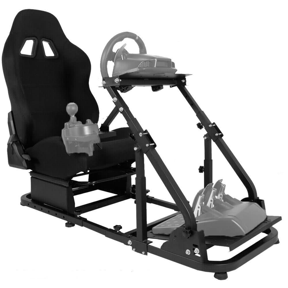 Adjustable Racing Simulator Cockpit Stand with Support Arms with Black Seat fit for Logitech G920 G27 G29,Steering Wheel Shifter Pedal Not Included