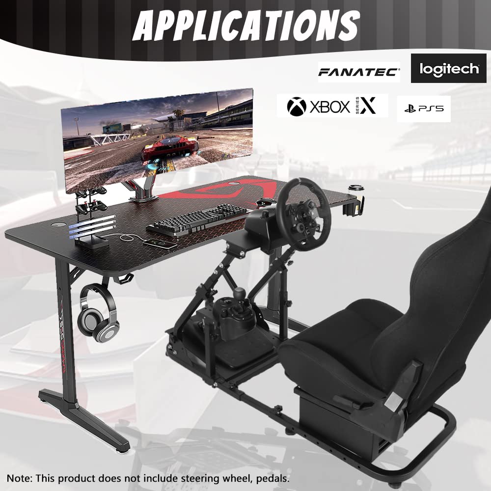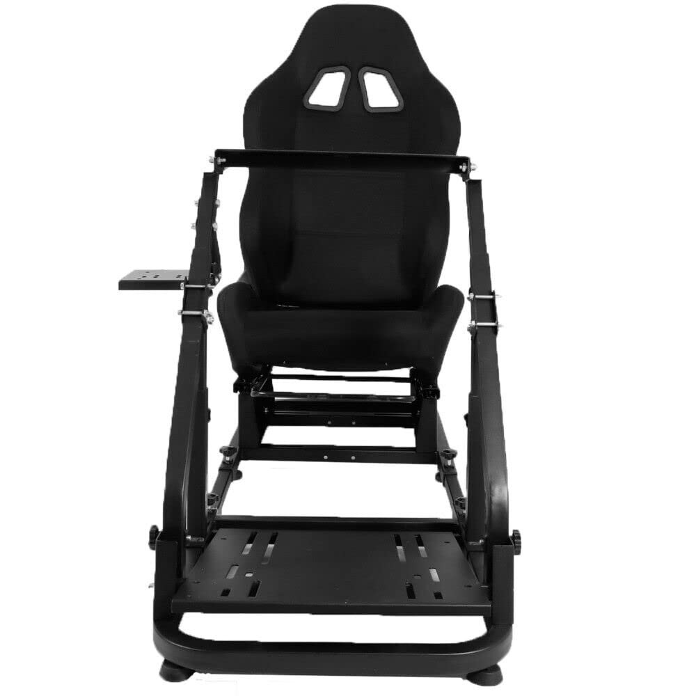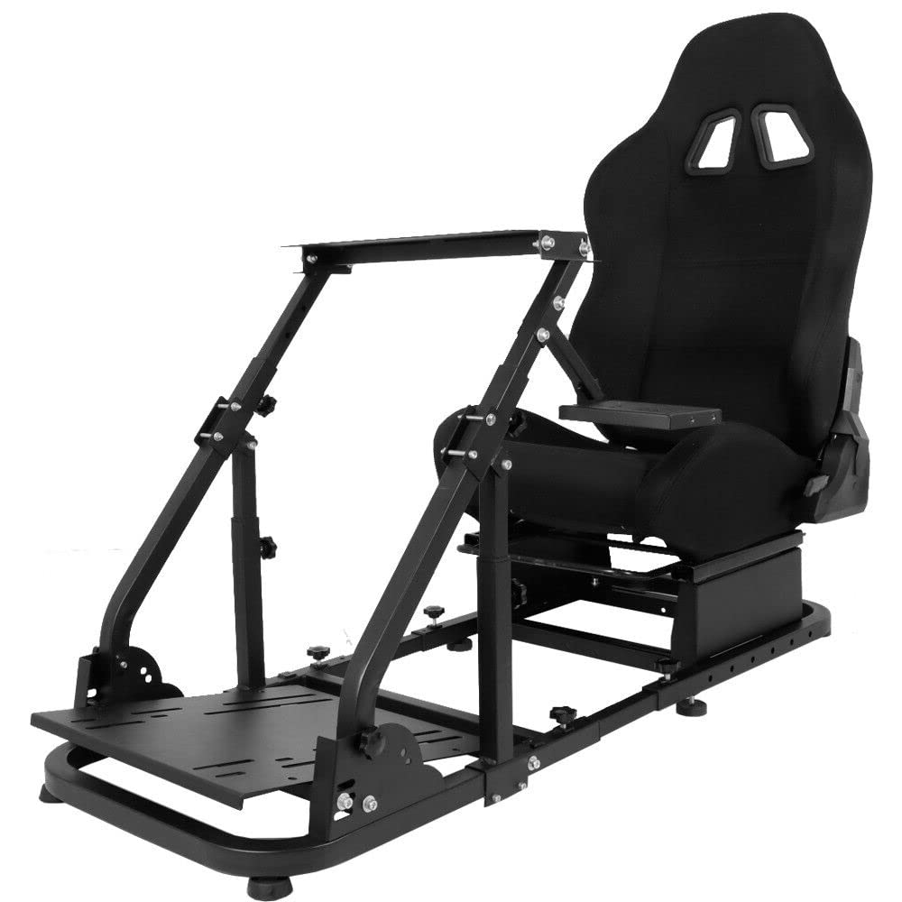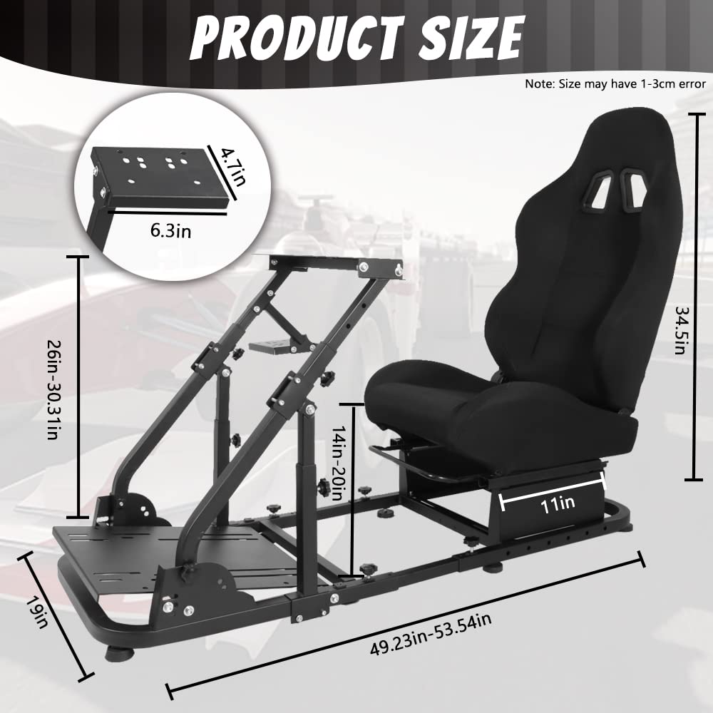 Adjustable Racing Simulator Cockpit Stand with Support Arms with Black Seat fit for Logitech G920 G27 G29,Steering Wheel Shifter Pedal Not Included