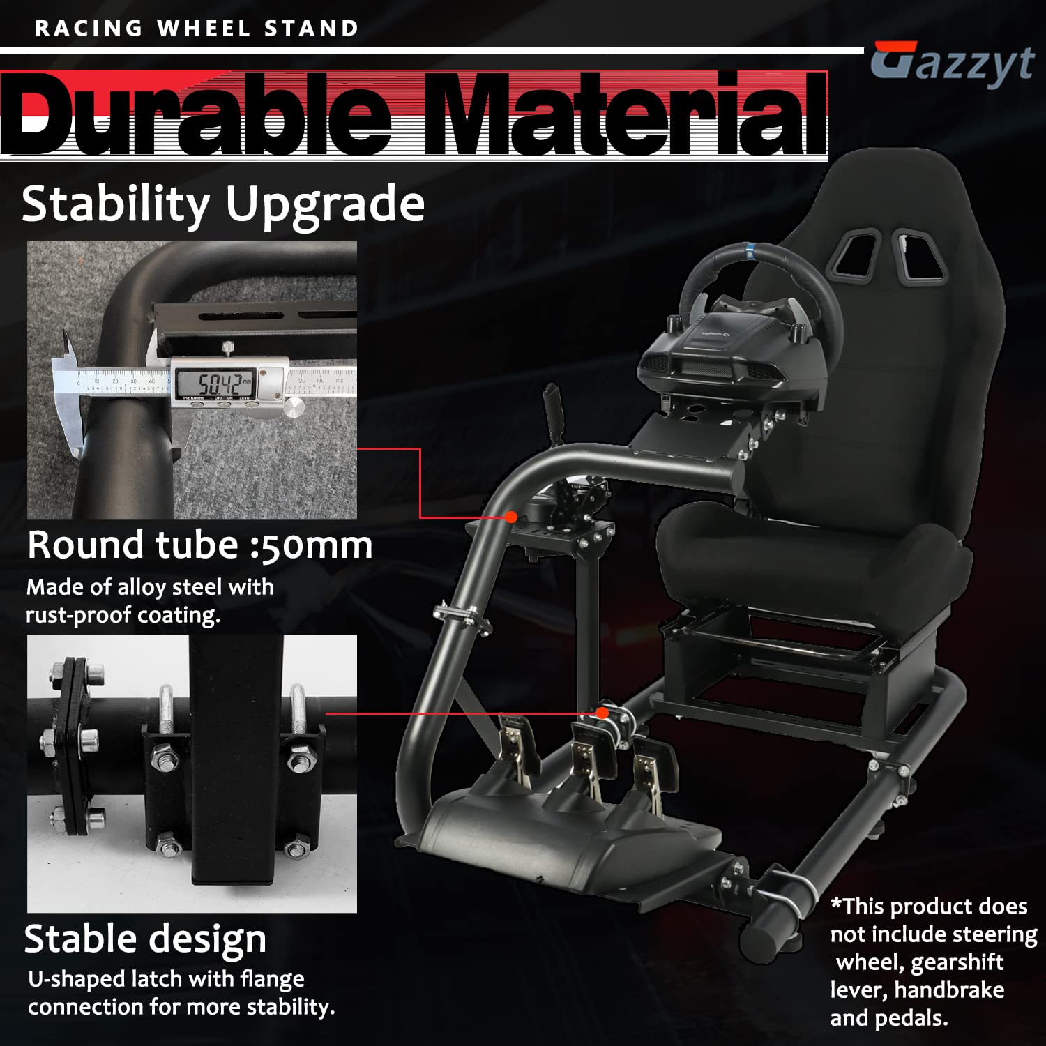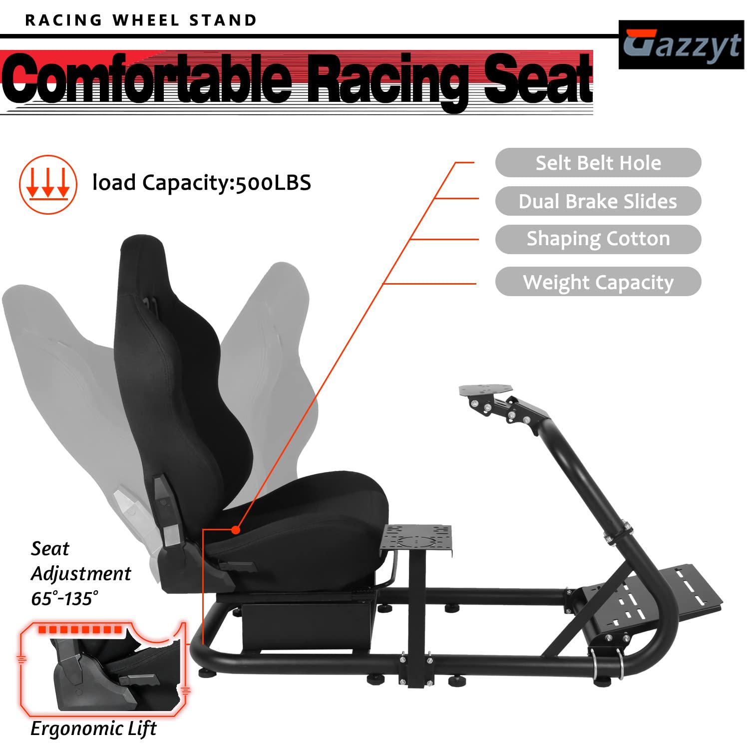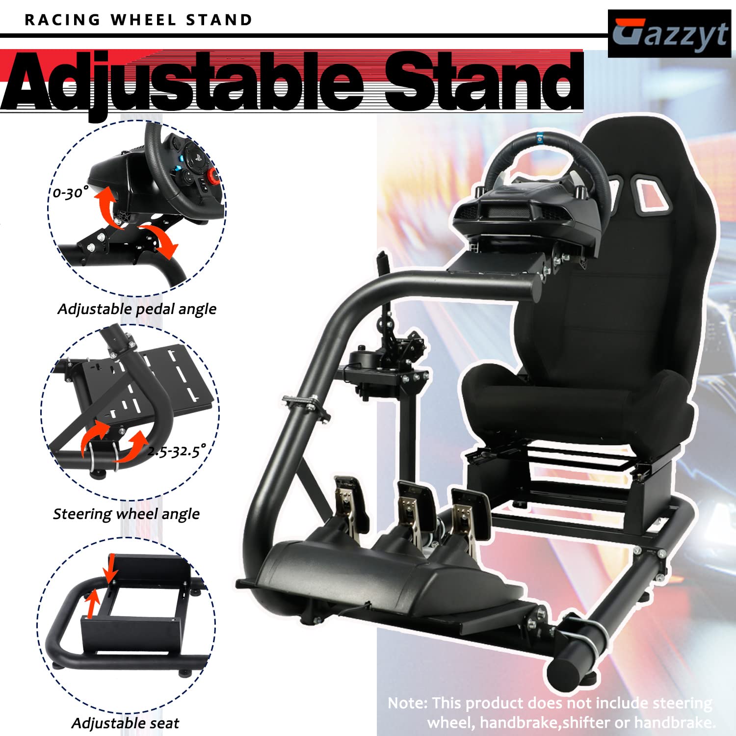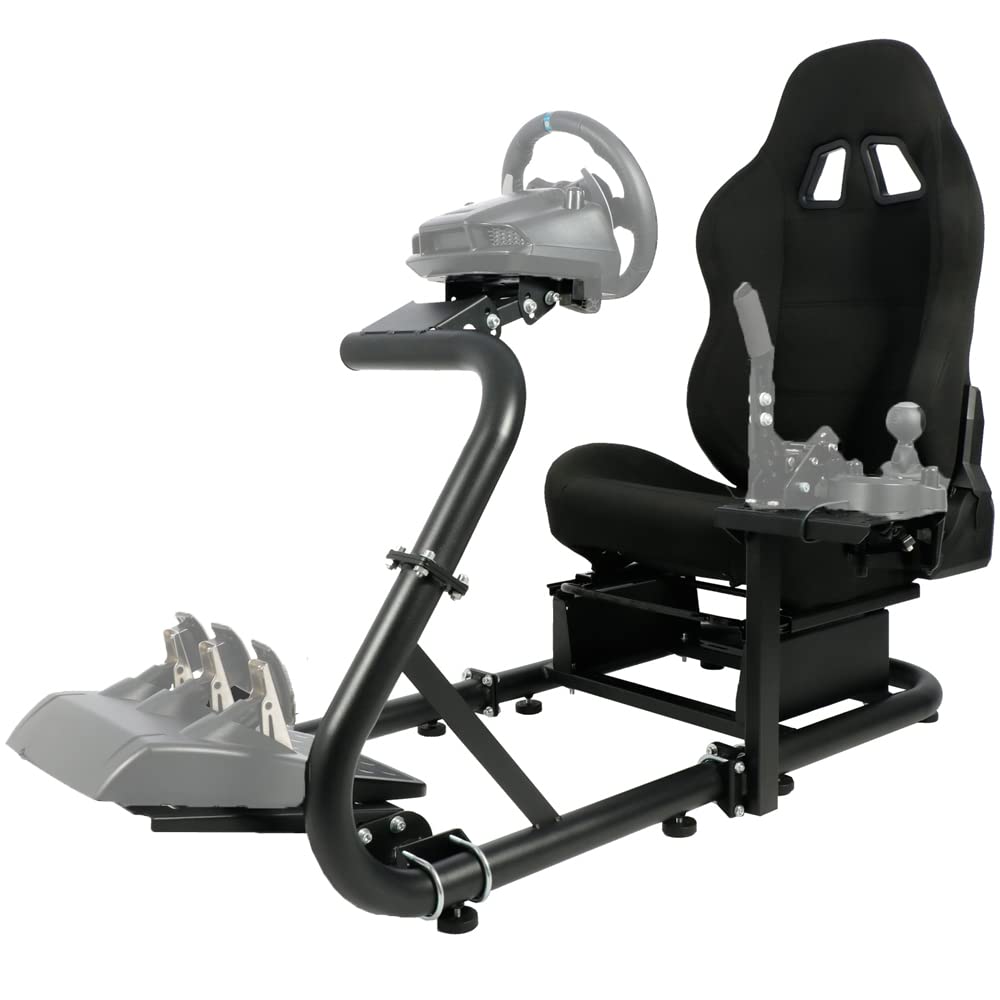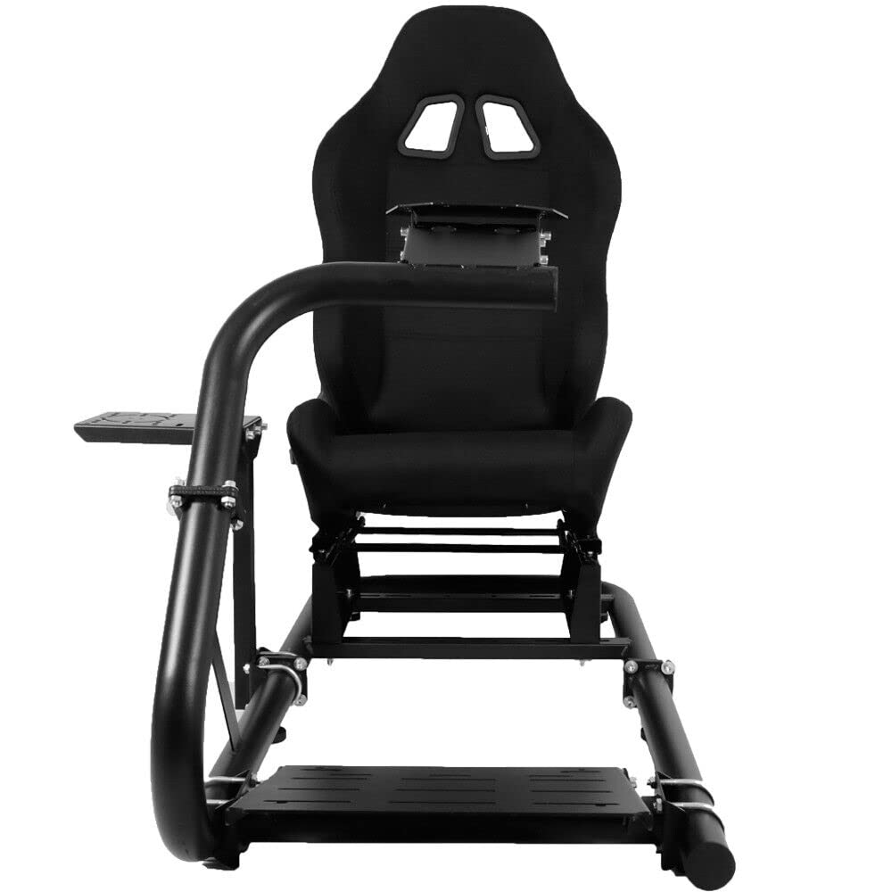 G29 Racing Simulator Cockpit Stand with Black Seat fits G27 G923 G920, Thrustmaster, Fanatec, Single Arm Large Round Tube Racing Wheel Stand Shifter&Wheel&Pedals Not Included