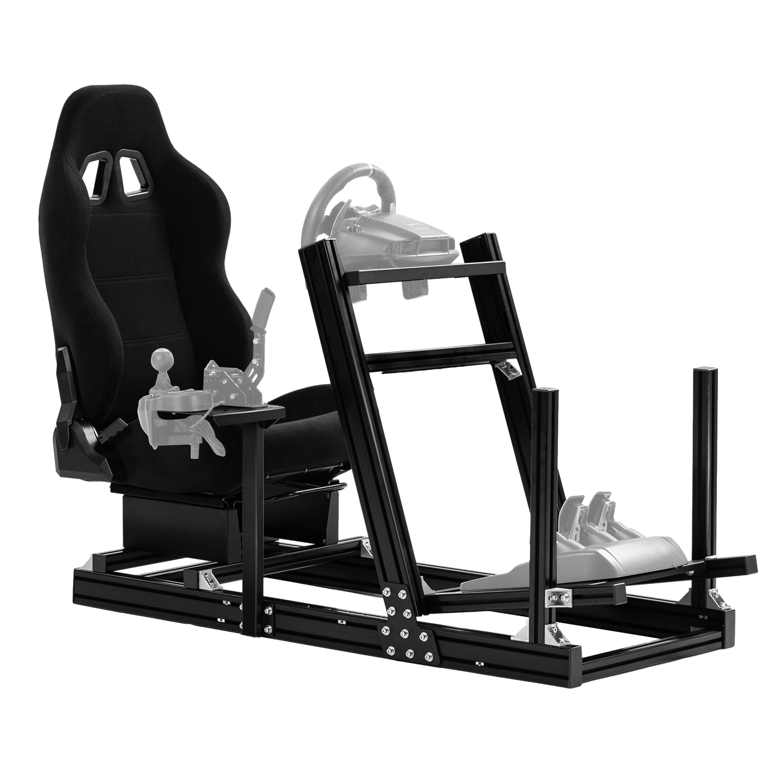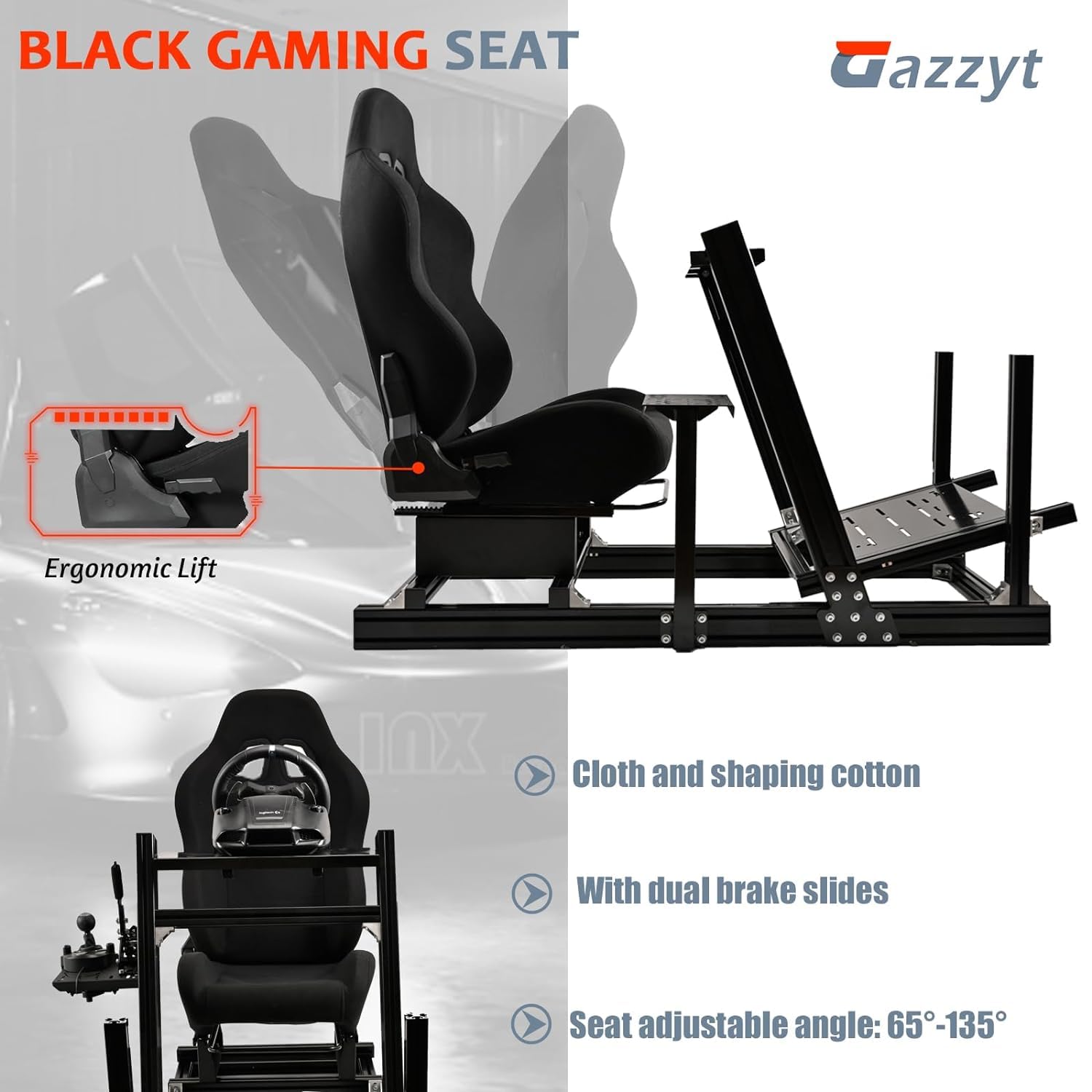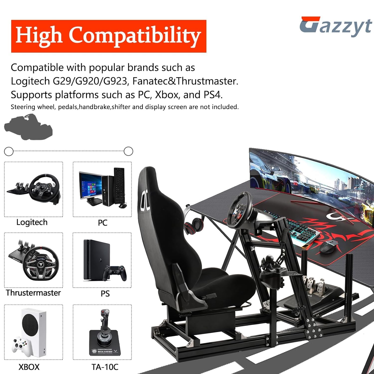 Gazzyt G29 Racing Simulator Cockpit Black Racing Seat Stand Fit for Logitech G920 G923, Thrustmaster, Fanatec, Aluminum Sim Racing Cockpit without Wheel,Pedal,Handbrake,Shifter,TV