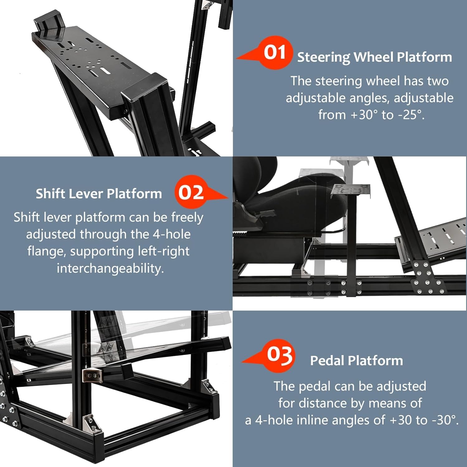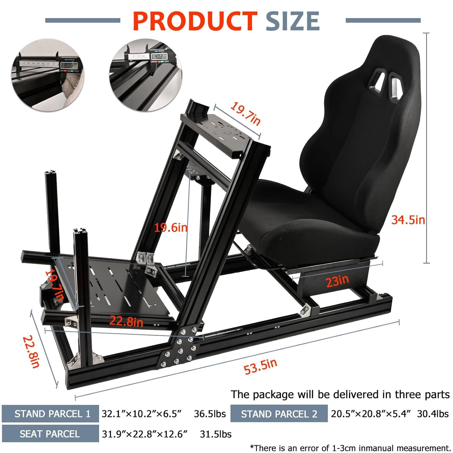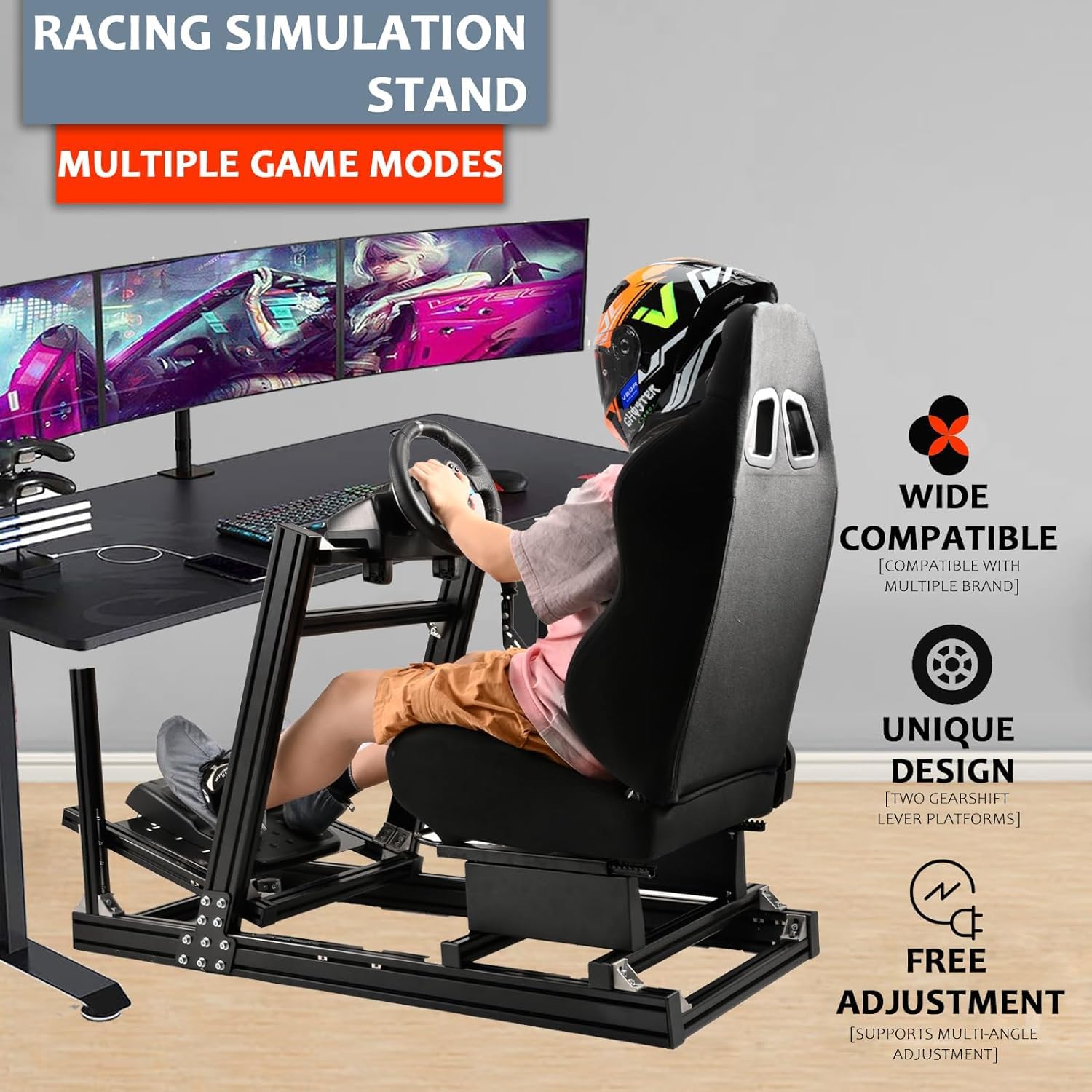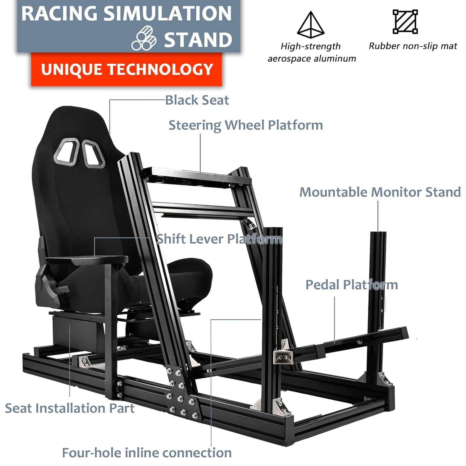 Gazzyt G29 Racing Simulator Cockpit Black Racing Seat Stand Fit for Logitech G920 G923, Thrustmaster, Fanatec, Aluminum Sim Racing Cockpit without Wheel,Pedal,Handbrake,Shifter,TV