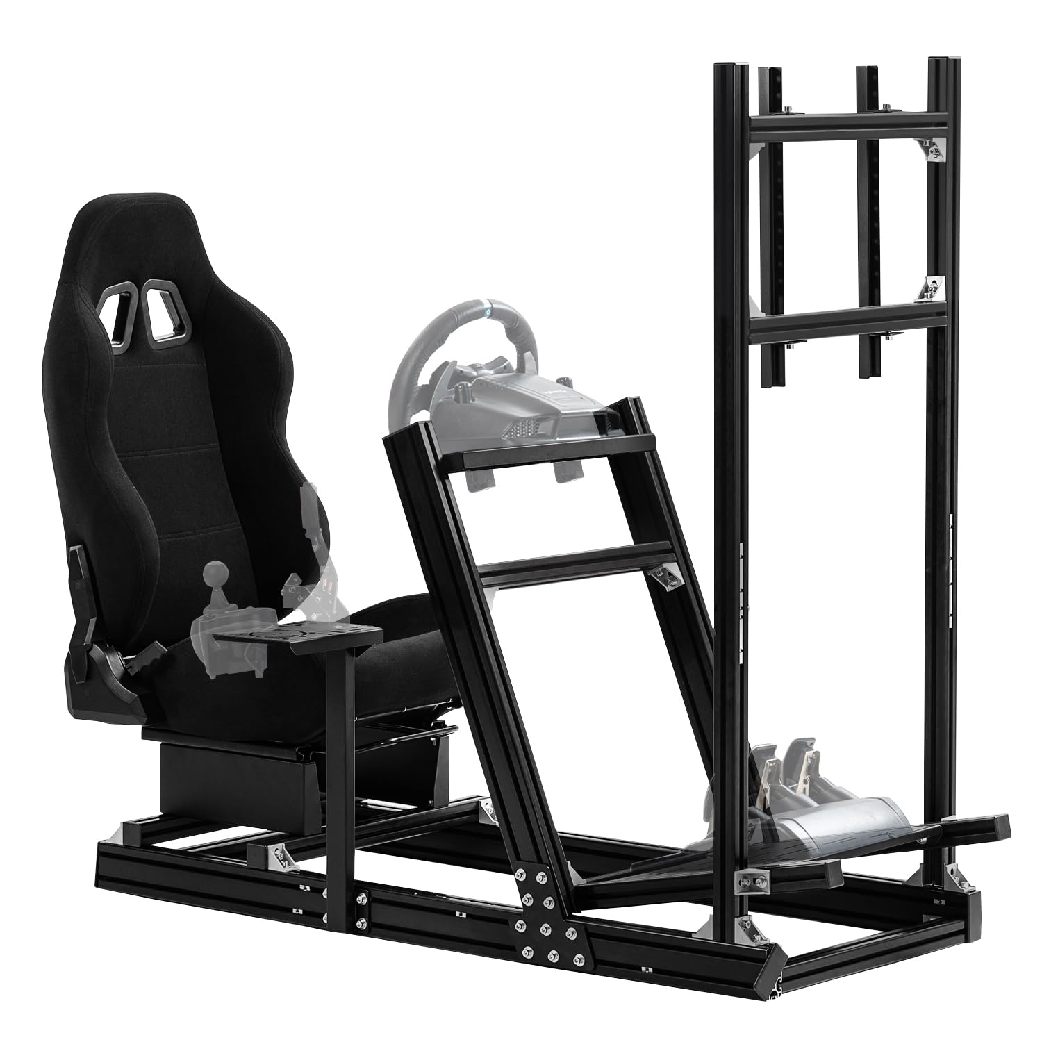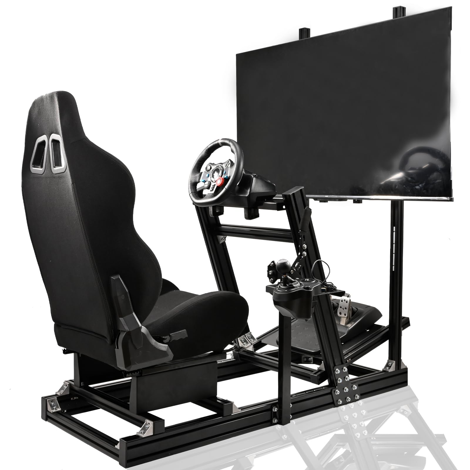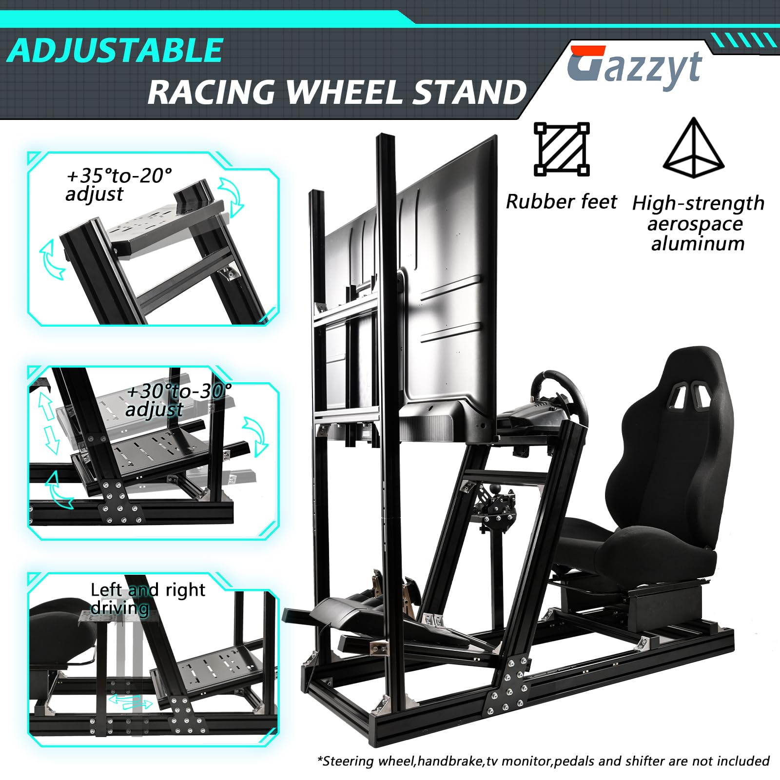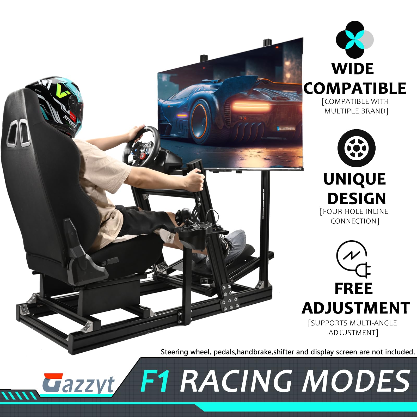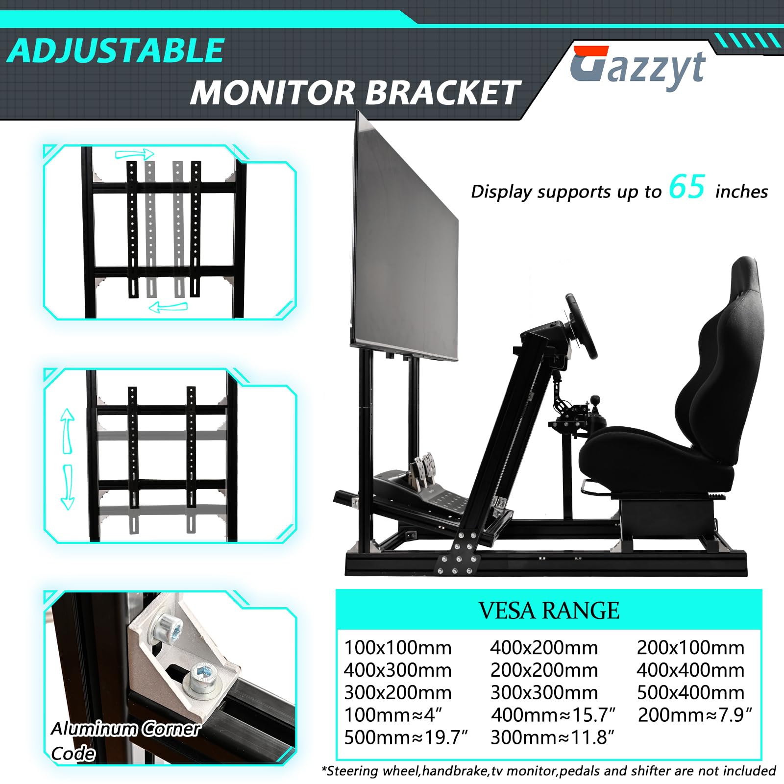 Gazzyt G29 Racing Simulator Cockpit Black Racing Seat Stand with Monitor Frame Fit for Logitech G920 G923, Thrustmaster, Fanatec, Aluminum Sim Racing Cockpit without Wheel,Pedal,Handbrake,Shifter,TV