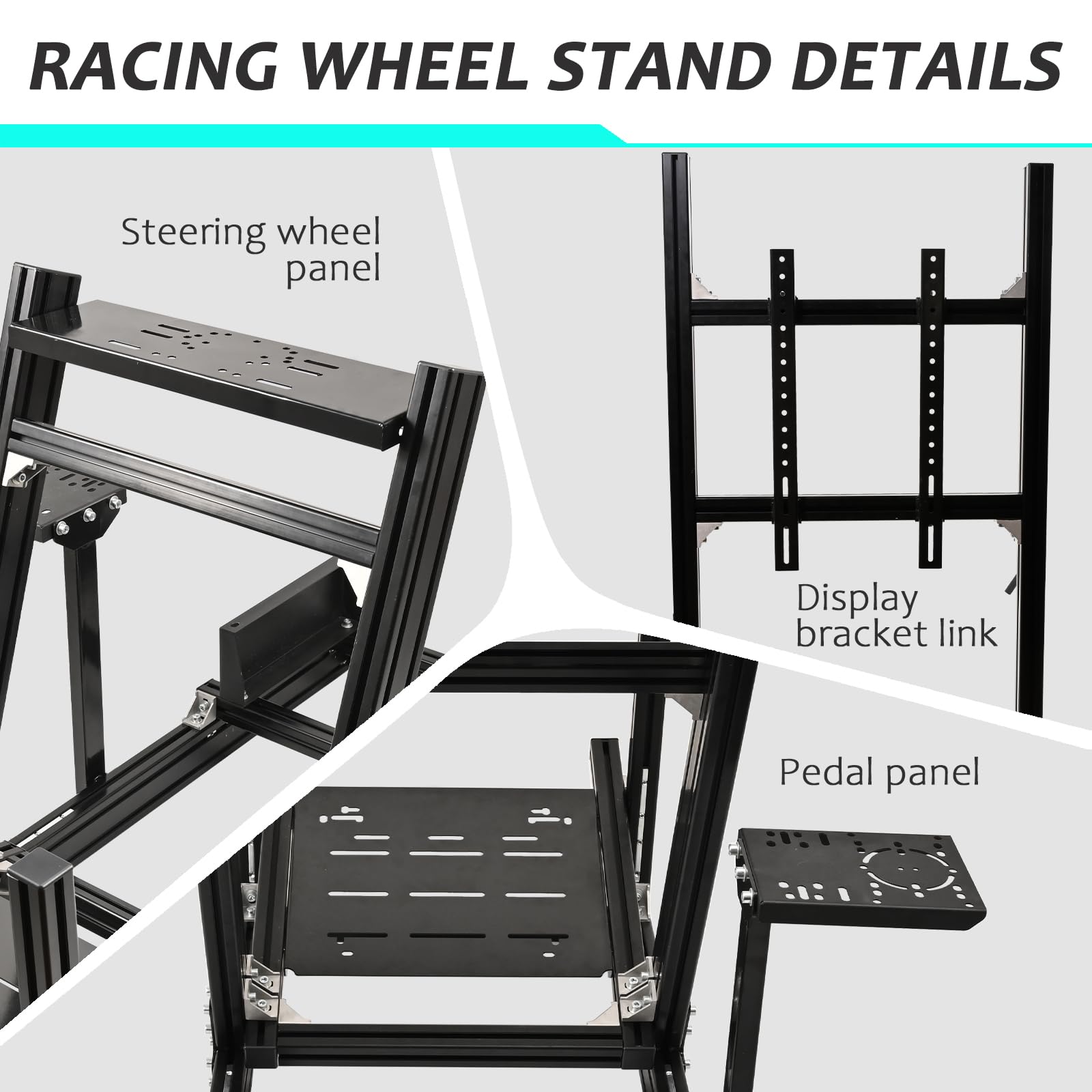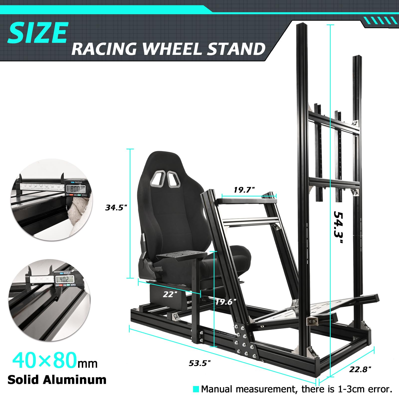 - Estructura estable: esta cabina de carreras está hecha de perfiles de aluminio de grado aeronáutico de 1.57 x 2.58 pulgadas, y la estructura de una sola pieza es muy estable, proporciona a los jugadores un entorno de conducción cómodo y estable
