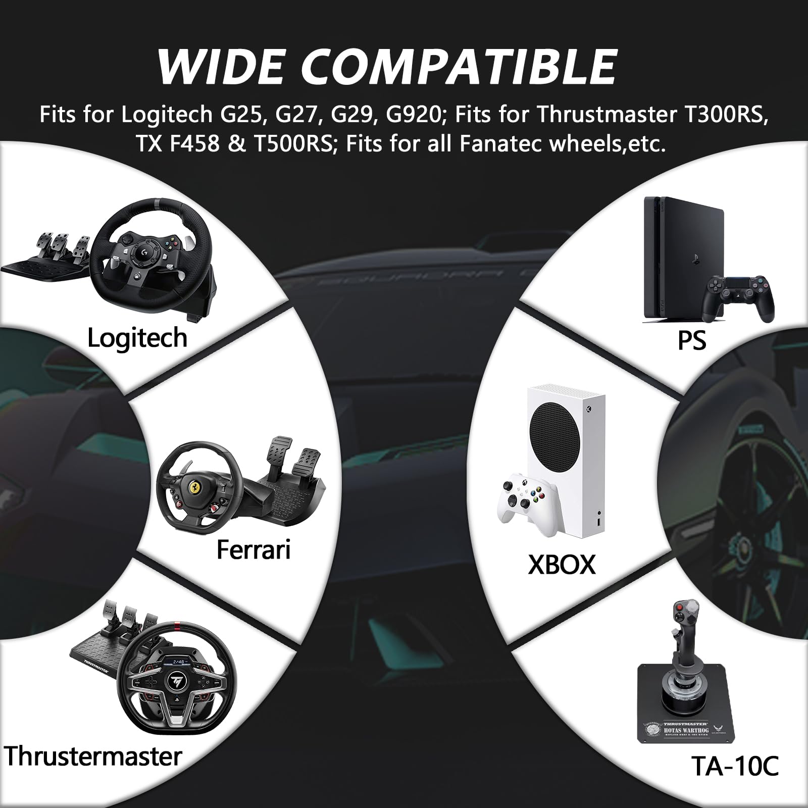 - Dispositivos adaptables: este soporte para volante se puede adaptar a la mayoría de las marcas populares, como Logitech, G29, G920, G923, Thrustmaster, T80, T150, etc