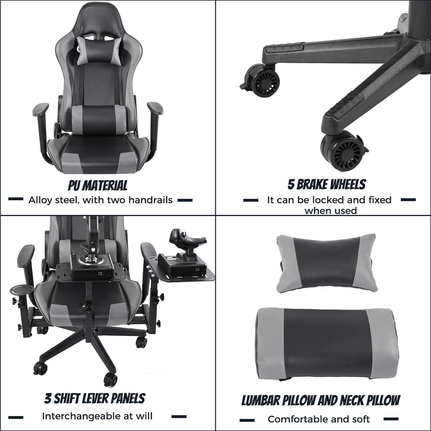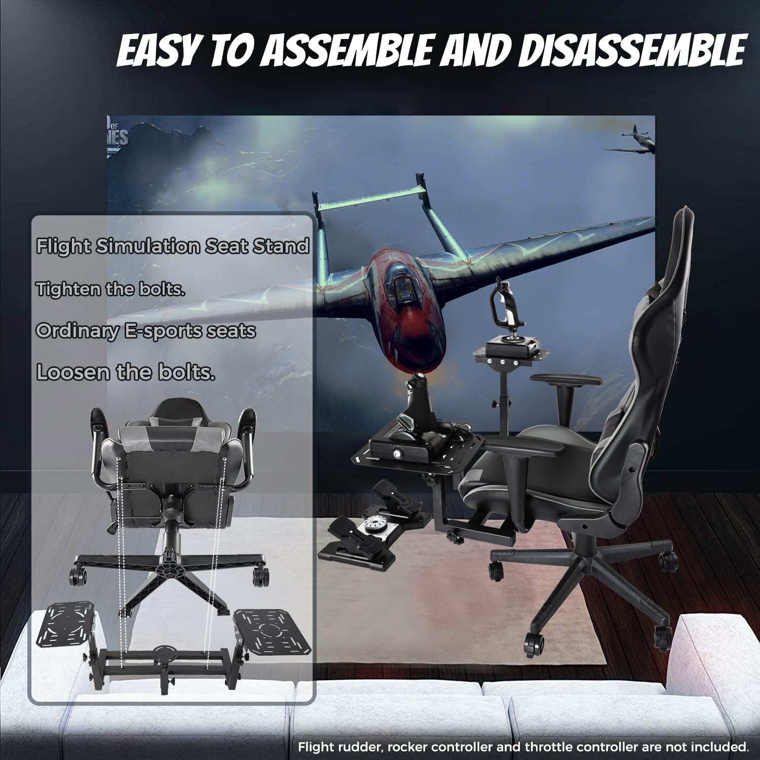 - Uso multifuncional: este soporte de asiento se puede utilizar como un soporte de juego de máquina voladora, el montaje se puede completar para entrar en el modo de batalla para el control de vuelo. Y también se adapta al juego de carreras.