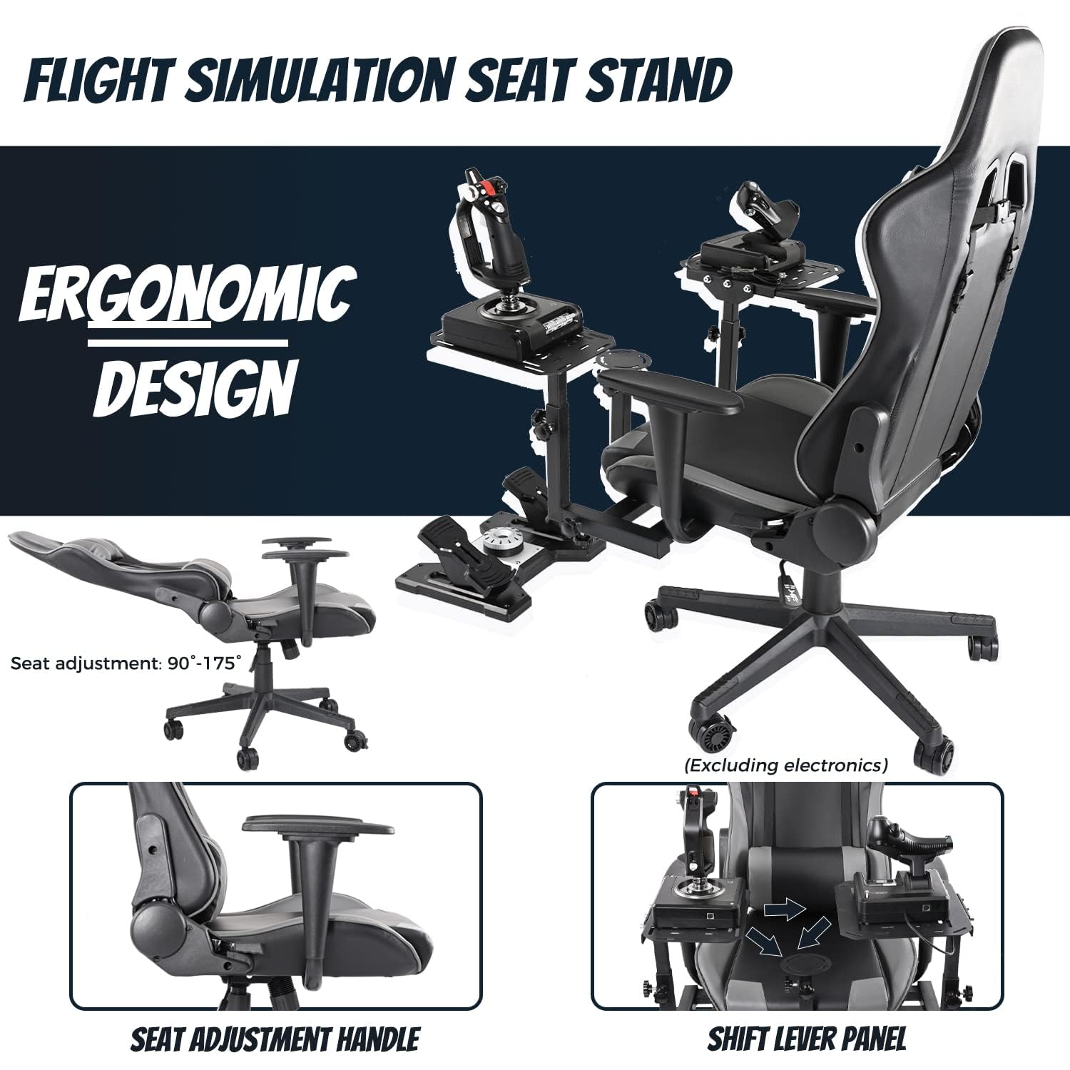 Gazzyt Removable Flight Simulator Cockpit Racing Seat Stand Fits for Logitech/Thrustmaster X52 X52PRO X56, Hotas Warthog T16000M, Excluding Pedal, Joystick and Throttle