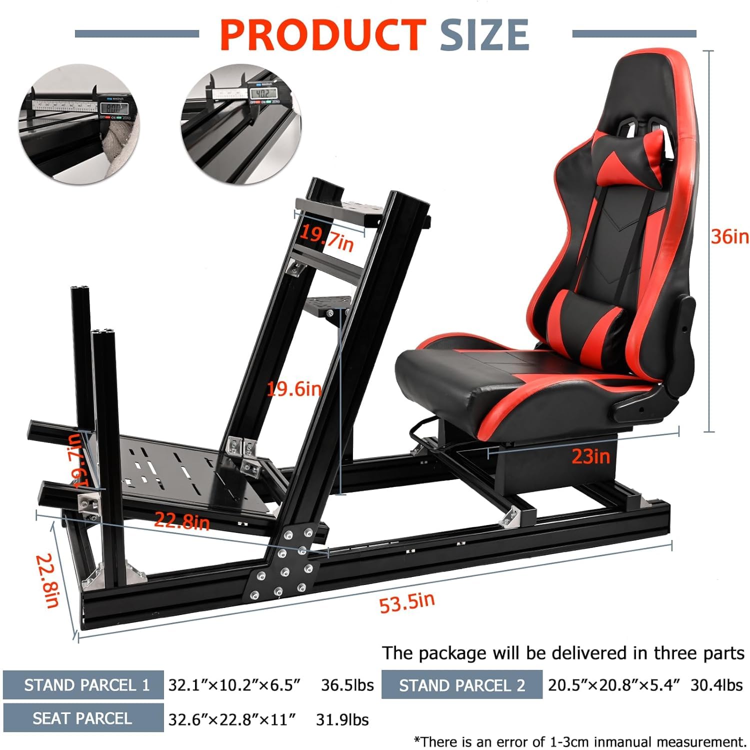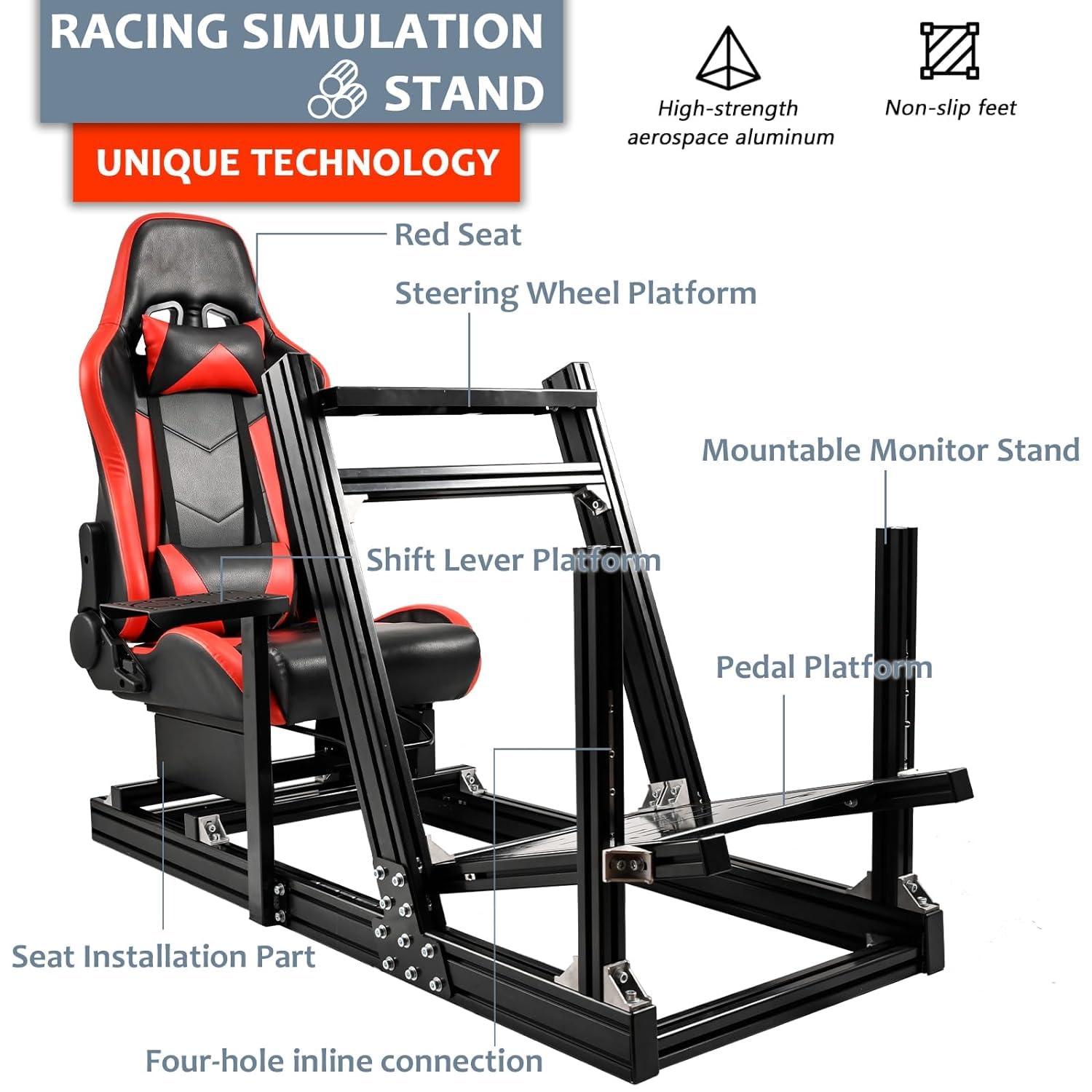 - Material de alta gama: esta cabina de simulador de carreras de alta gama está hecha de material de aluminio de aviación de alta resistencia, y el marco principal está hecho de aluminio sólido de 1.57 x 2.7 pulgadas, lo que hace que el cuerpo principal del soporte sea más resistente y duradero. La superficie está recubierta con recubrimiento antioxidante de oxidación de electrodos, lo que hace que la superficie sea más suave.