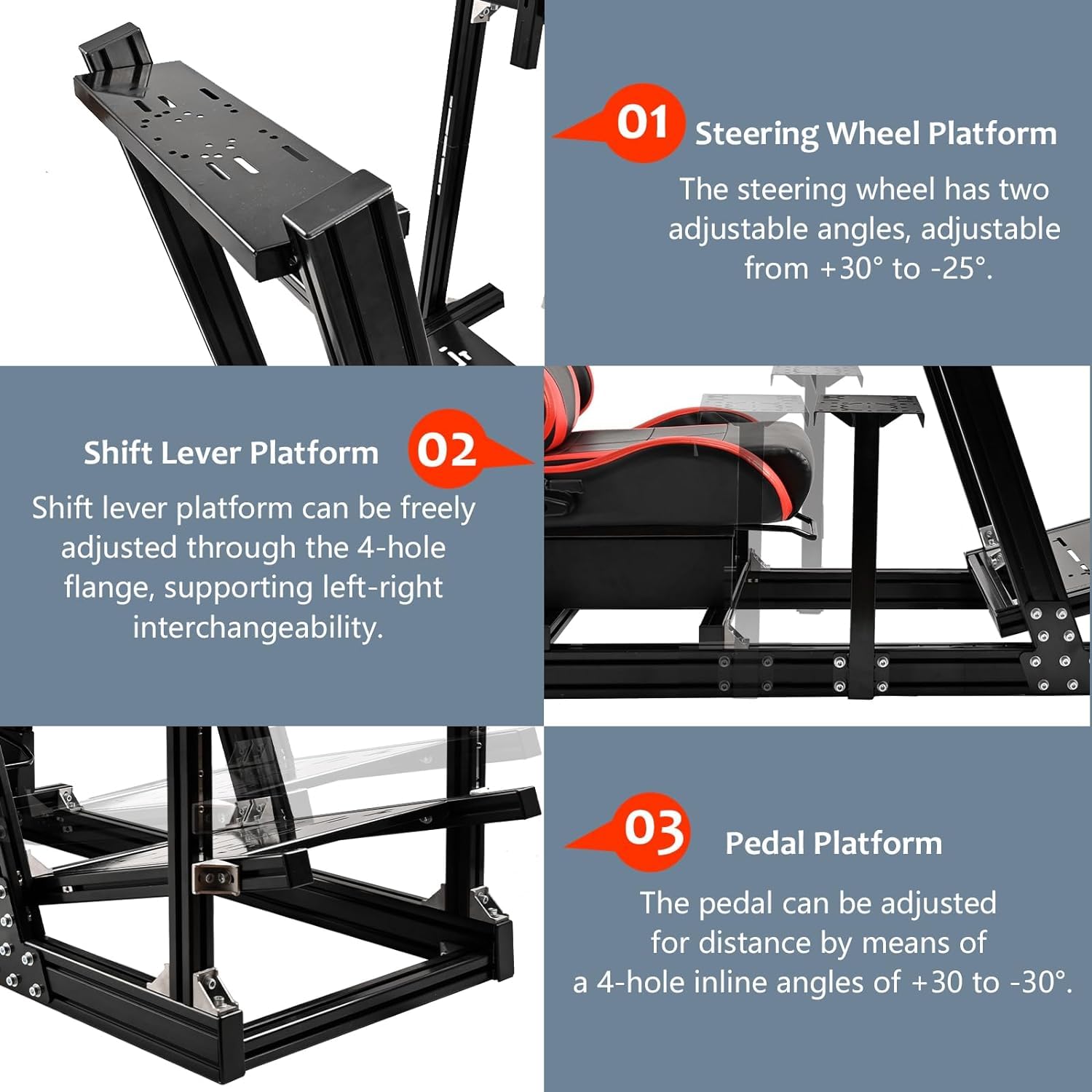 - Rica adaptabilidad: la cabina del simulador de carreras se puede adaptar a la mayoría de los dispositivos de juego en el mercado, incluyendo el ajuste para Logitech, Thrustmaster, Fanatec, así como pedales de bricolaje, para satisfacer tus necesidades de diferentes juegos y dispositivos.
