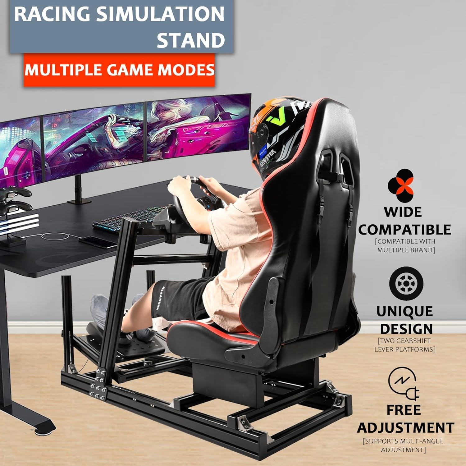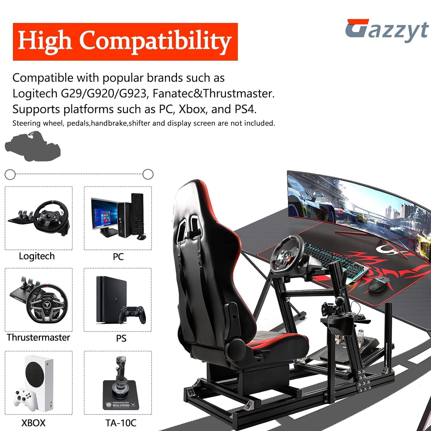 Gazzyt Simulador de vuelo cabina y simulador de carreras compatible con Logitech G27 G29 X52, Thrustmaster Hotas Warthog, rueda, pedal, palanca de cambios, teclado y palo de vuelo no incluidos (GR-80D)
