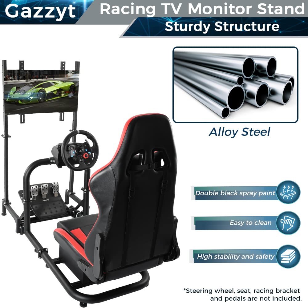 Racing Monitor Stand fit for Logitech Thrustmaster, Fanatec G25 G27 G29 T128X T248 T300 Large Round Tube Simulator Cockpit Without Wheel, Shift Lever, Pedals, Seat, TV and Racing Frame