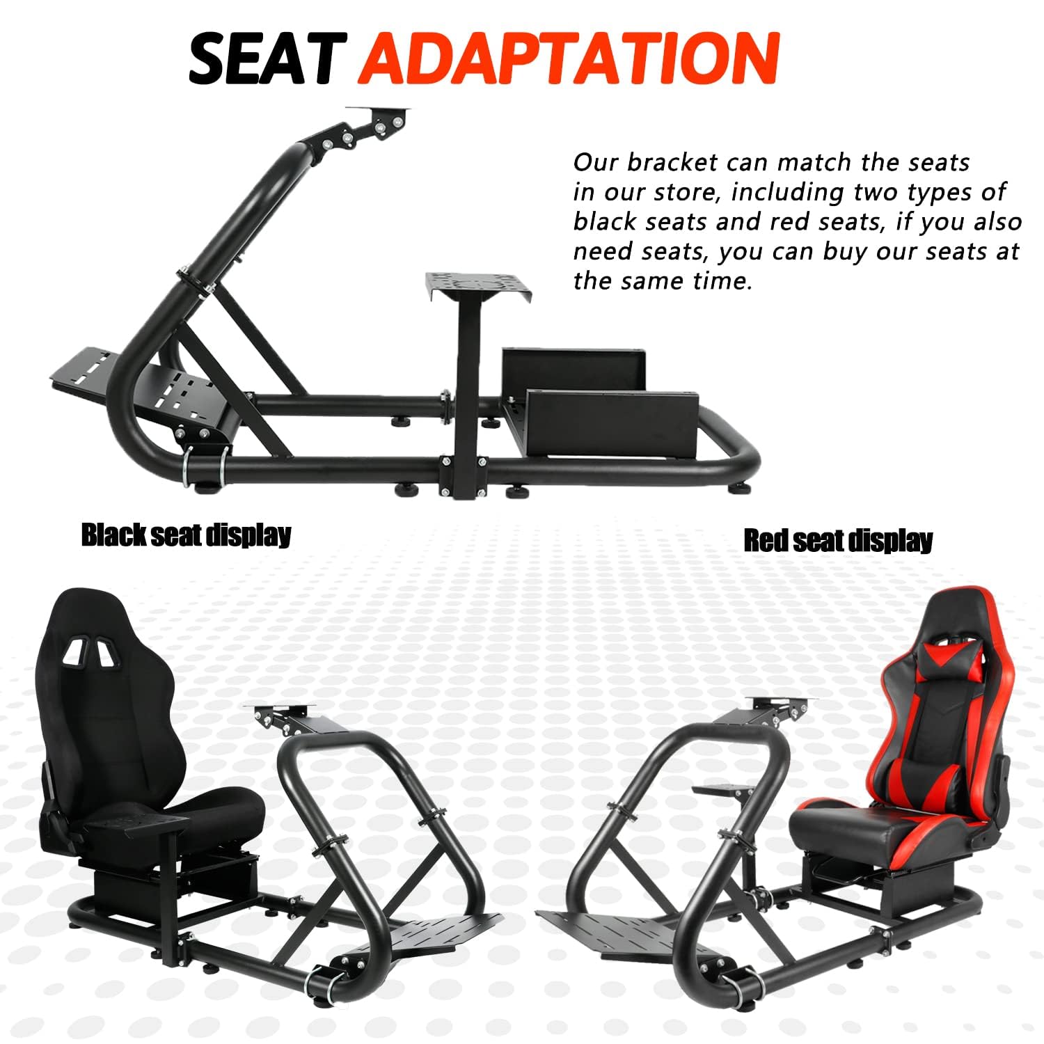 - Adaptación del asiento: este soporte de cabina de simulador de carreras no incluye equipo de carreras, como volante, pedales, caja de cambios y asiento.