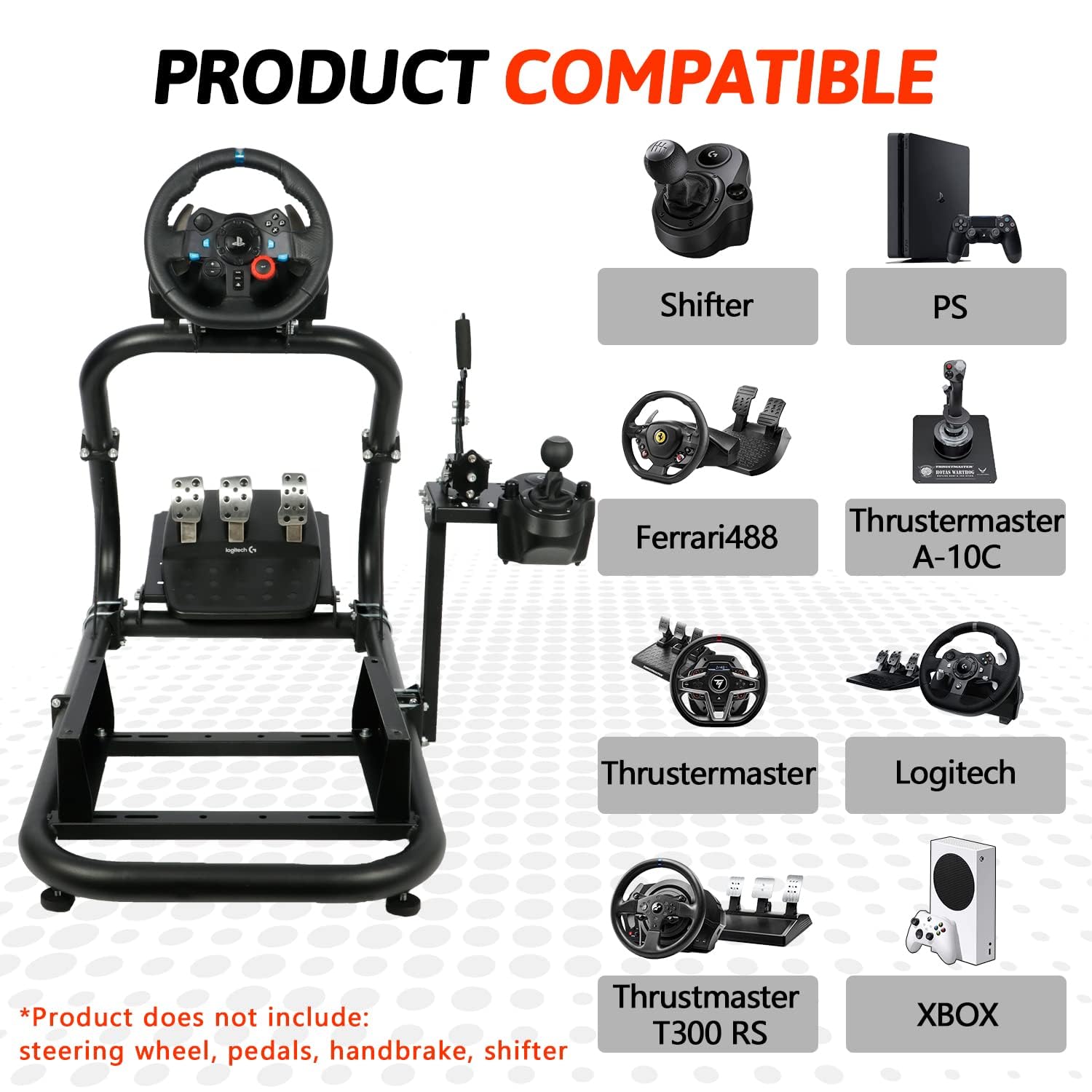 This racing steering wheel stand is compatible with most brands of equipment on the market, such as fit for Logitech, Fanatec & Thrustmaster, especially fit for Logitech G29, G920, G923 steering wheel.