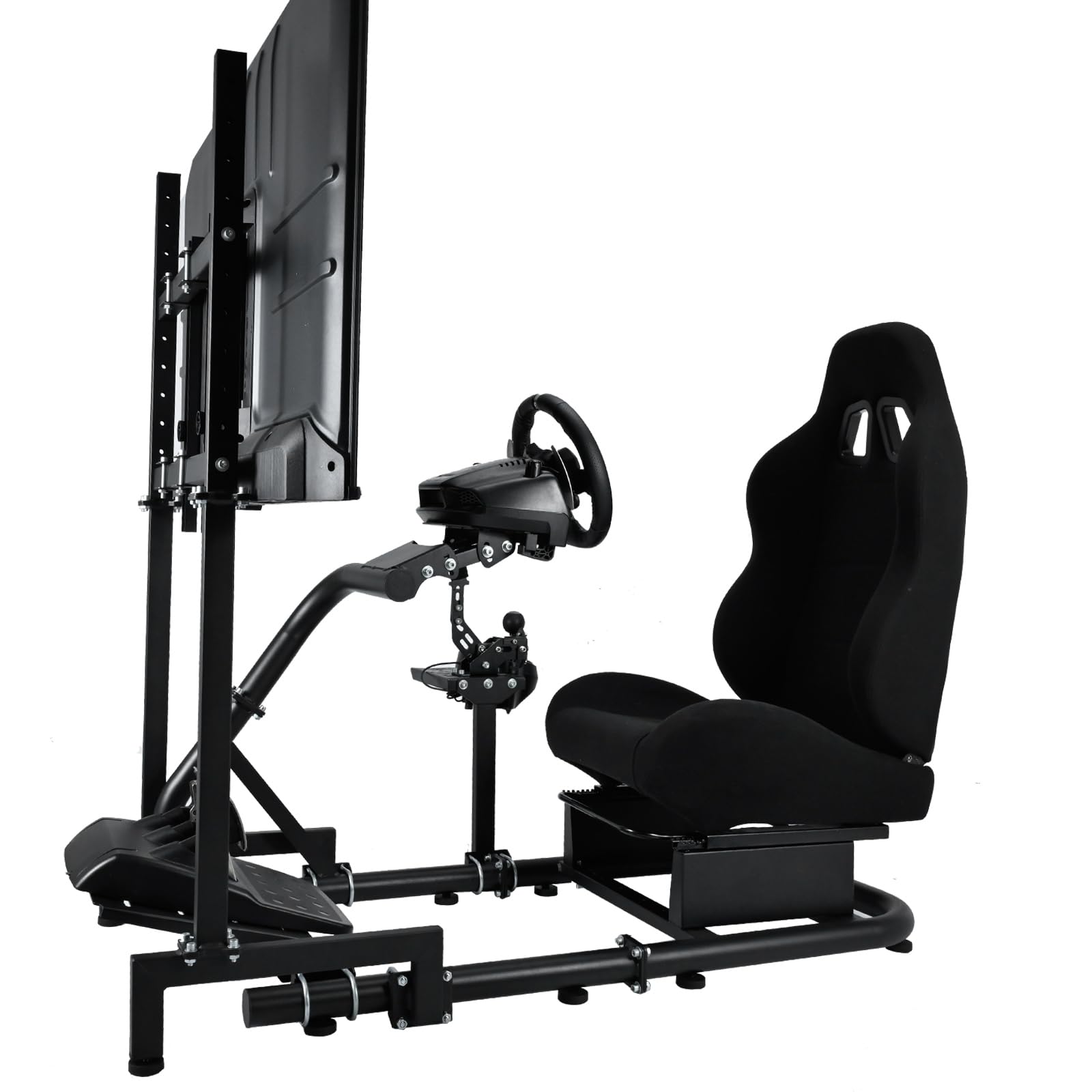 Racing Simulator Cockpit Stand with Monitor Stand Black Seat fit for G29 G27 G920 G923 Thrustmaster Fanatec Racing Wheel Frame TV&Shifter&Wheel&Pedals Not Included