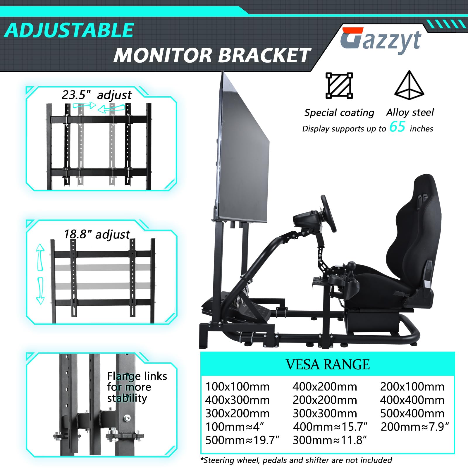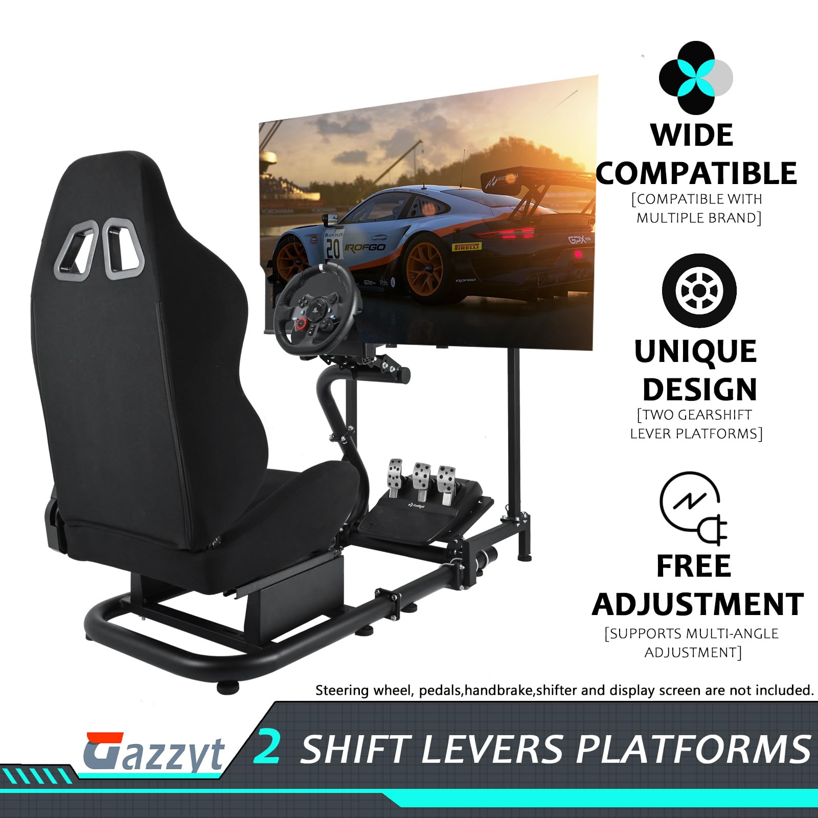 Gazzyt racing simulation cockpit with monitor stand