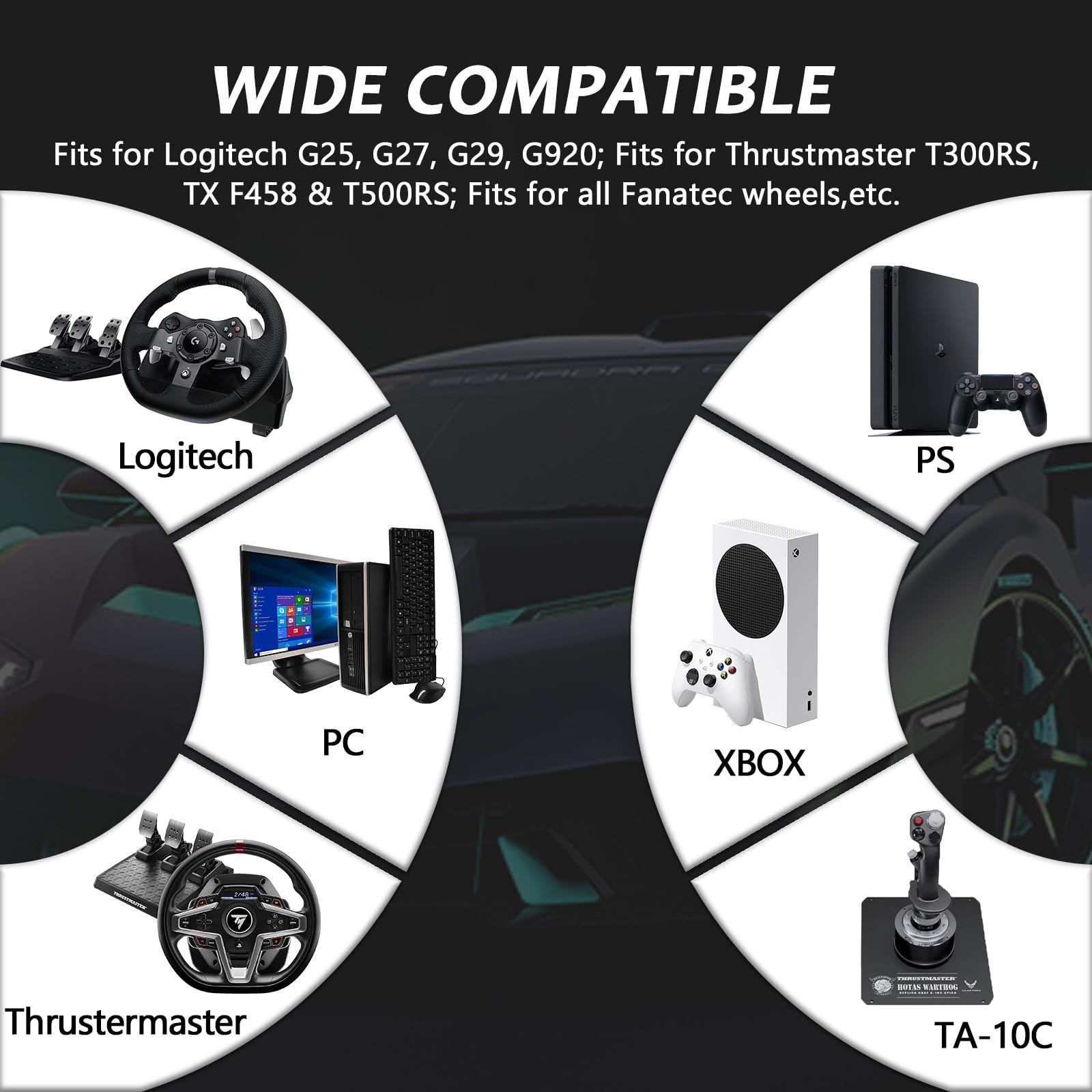 - Compatibilidad: este soporte de volante de carreras es compatible con la mayoría de marcas de equipos en el mercado, como Logitech, Fanatec y Thrustmaster, especialmente adecuado para volante Logitech G27, G29, G920. También apoya a los jugadores propios bricolaje.