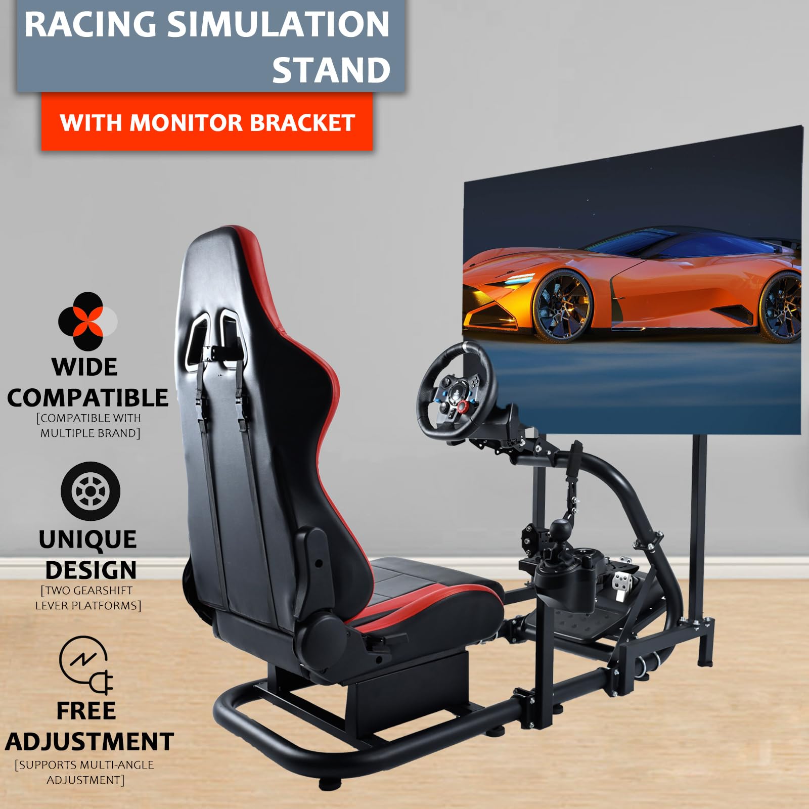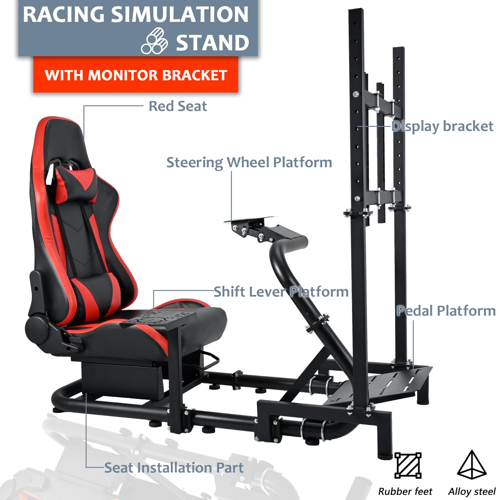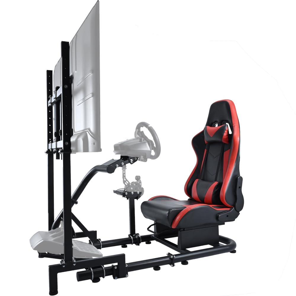 Racing Simulator Cockpit Stand with Monitor Stand Red Seat fit for G29 G27 G920 G923 Thrustmaster Fanatec Racing Wheel Frame TV&Shifter&Wheel&Pedals Not Included