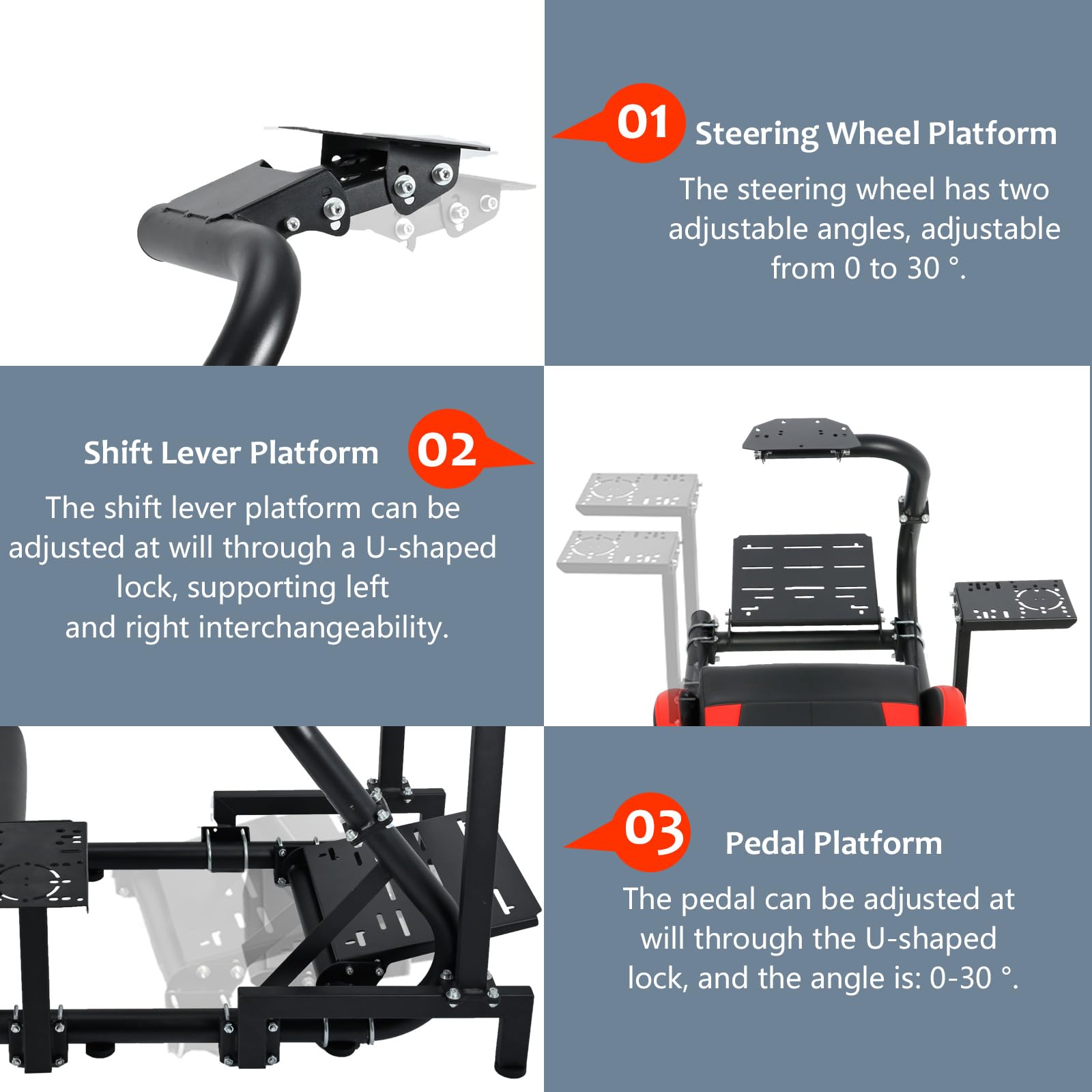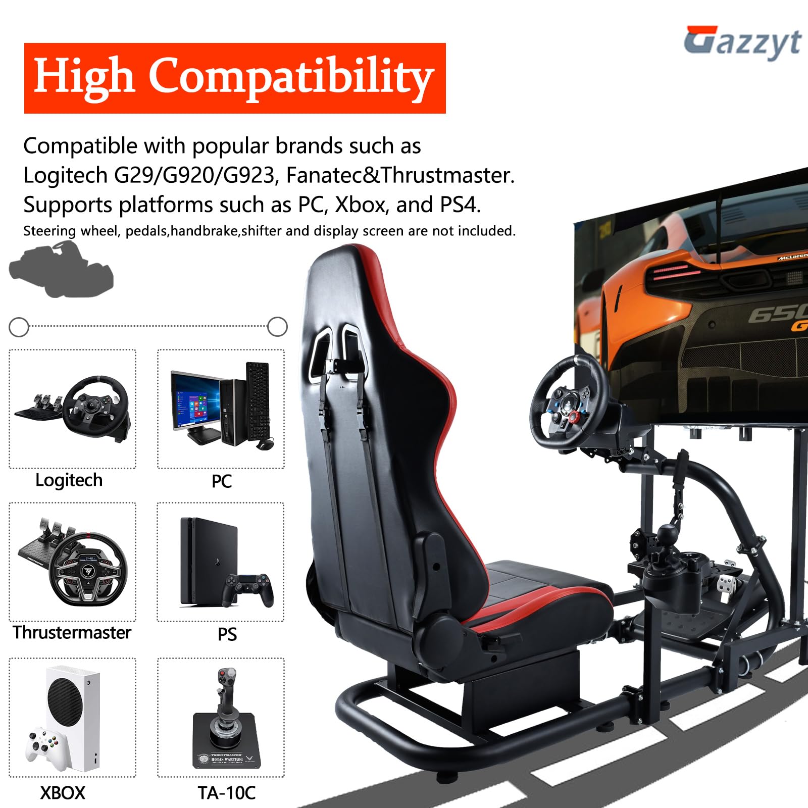 - Compatibilidad: este soporte de volante de carreras es compatible con la mayoría de marcas de equipos en el mercado, como Logitech, Fanatec y Thrustmaster, especialmente el volante Logitech G27, G29, G920. También apoya a los jugadores propios bricolaje.