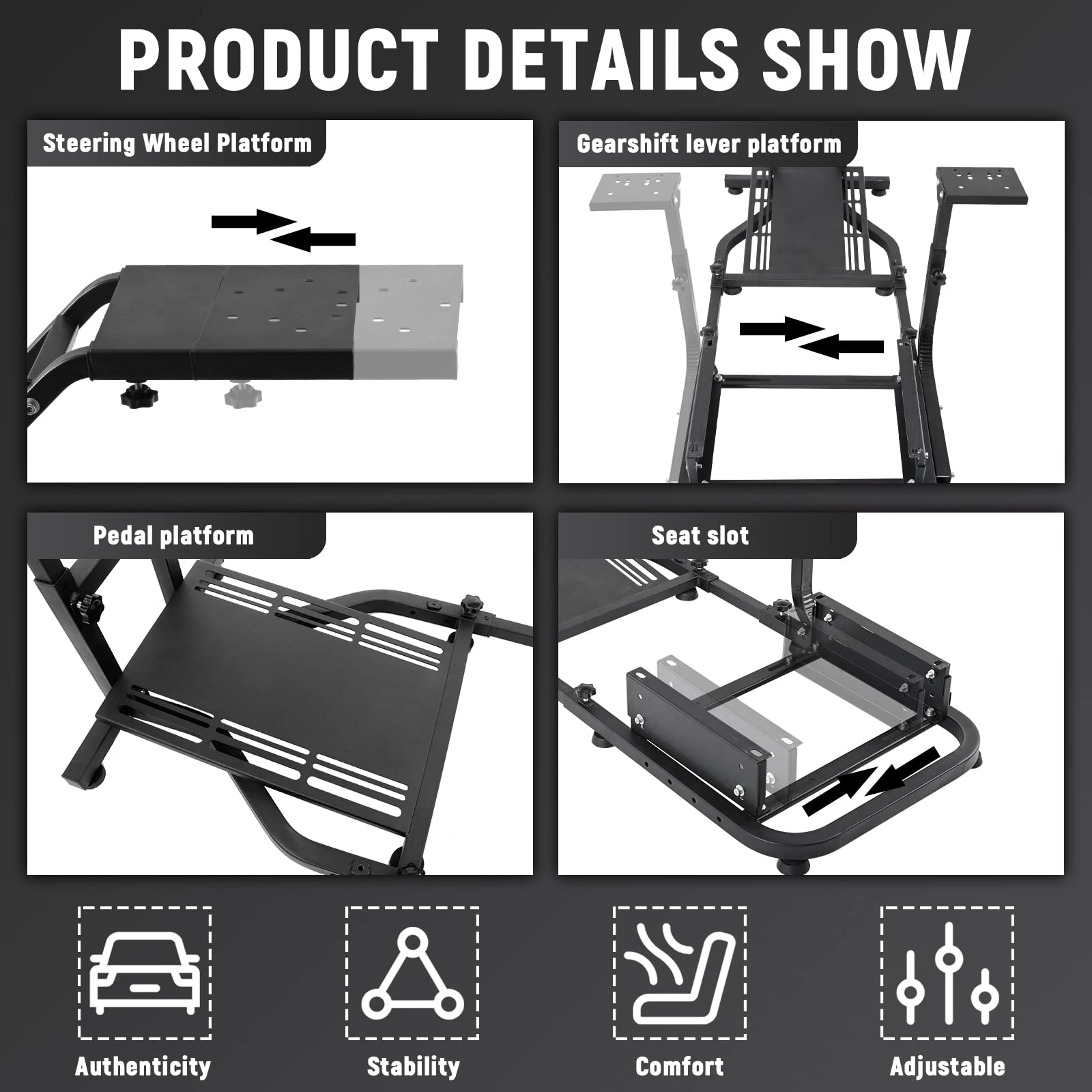- Nota: nuestro soporte para volante de carreras no incluye volante, pedales ni palanca de cambios. Debido al gran tamaño de nuestros productos, se dividirán en dos paquetes para la entrega y se pueden entregar en diferentes momentos.