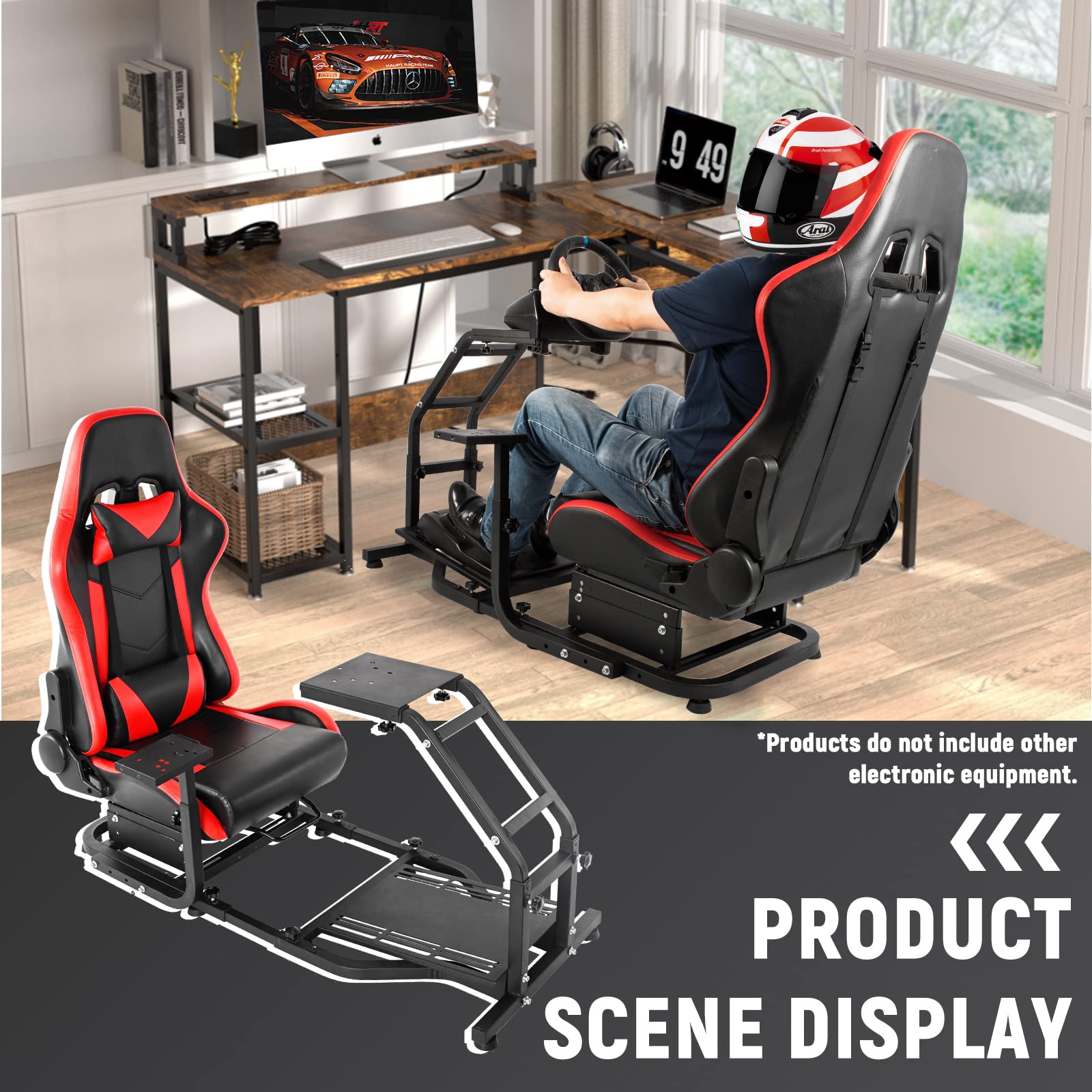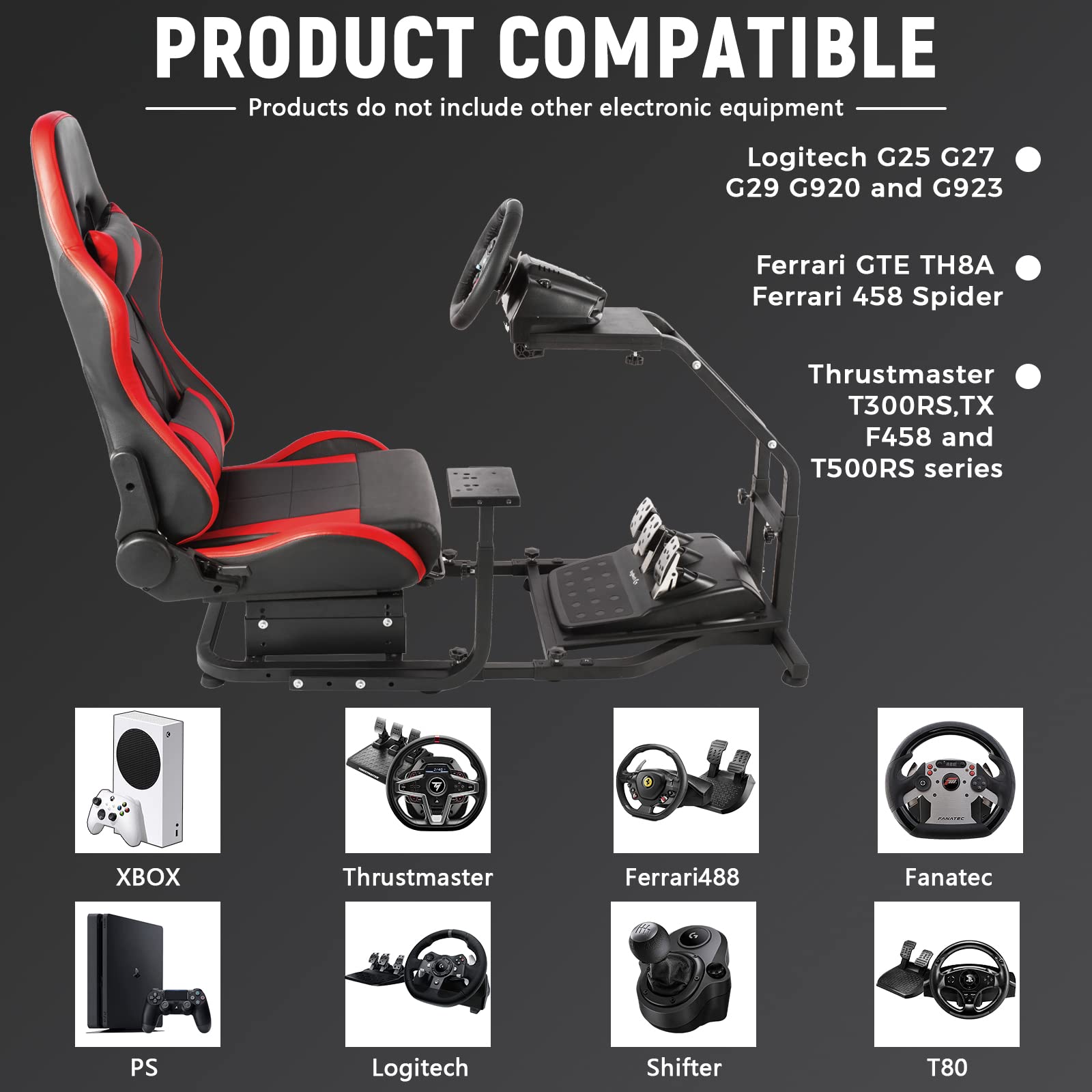 Racing Simulator Cockpit Stand with Red Racing Chair Adjustable Racing Wheel Stand fit for Logitech,Thrustmaster, G27 G29 G920, T300 T248 without Wheel Pedal and Shifter