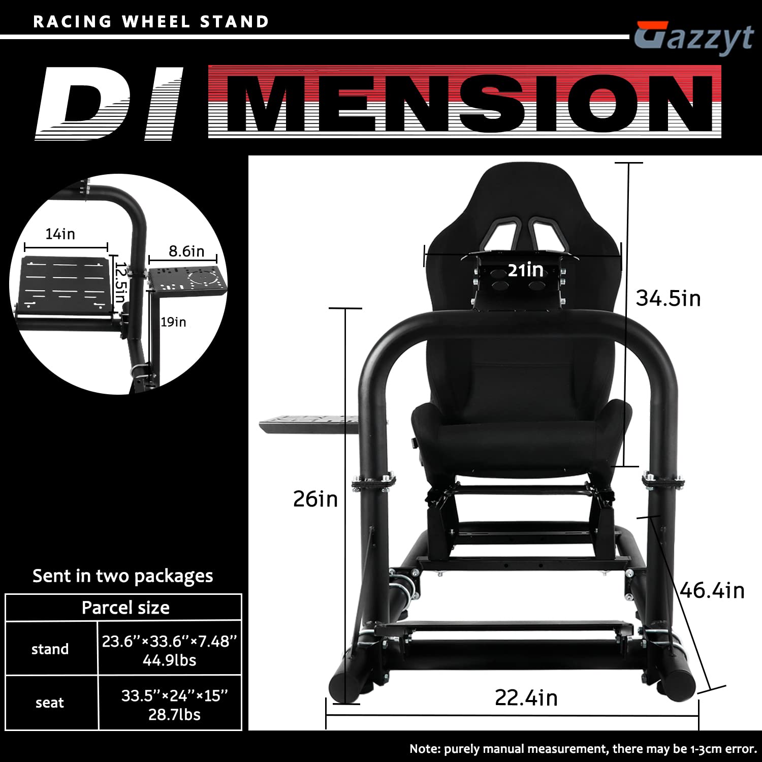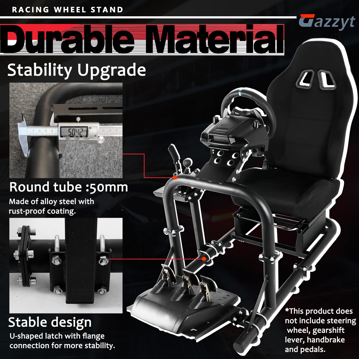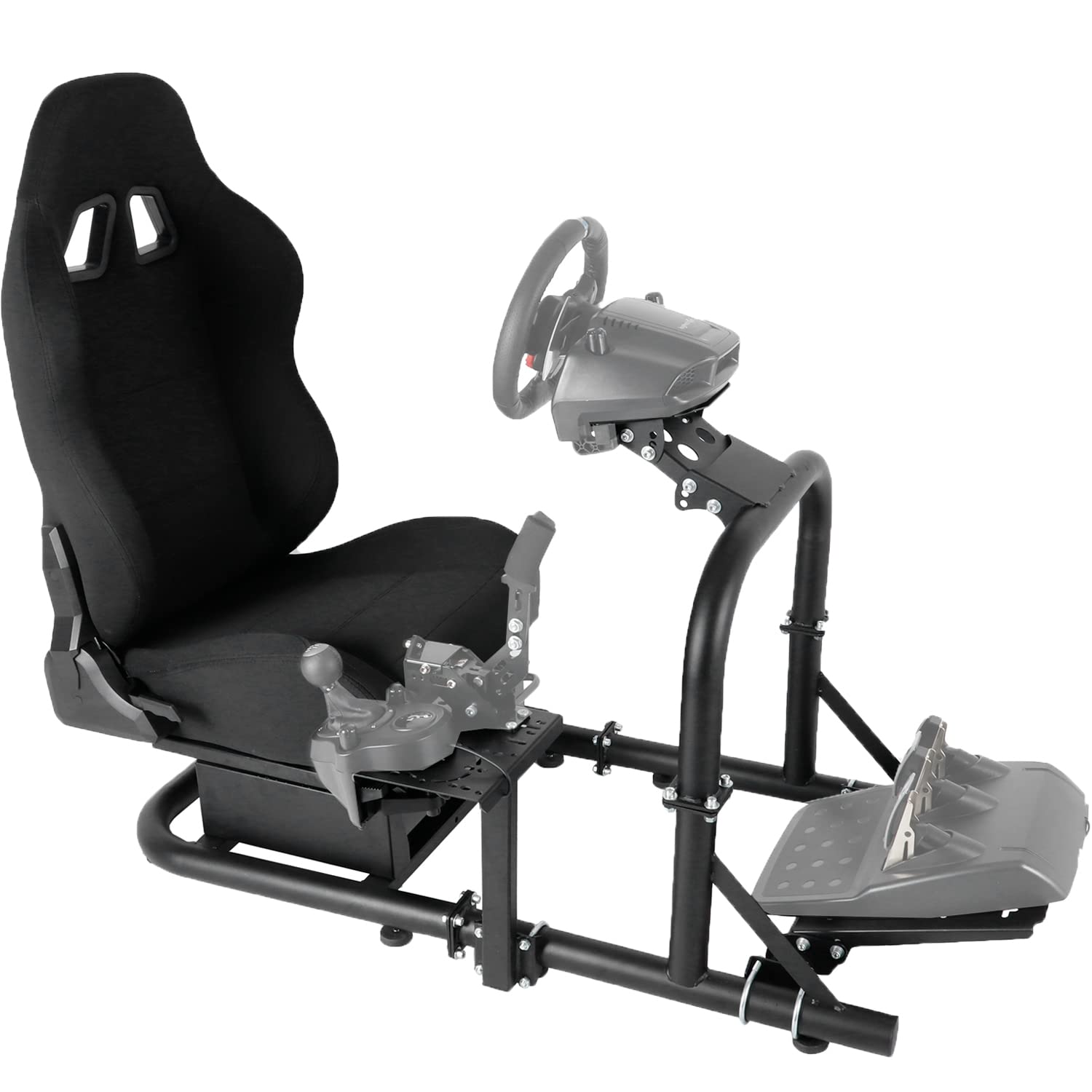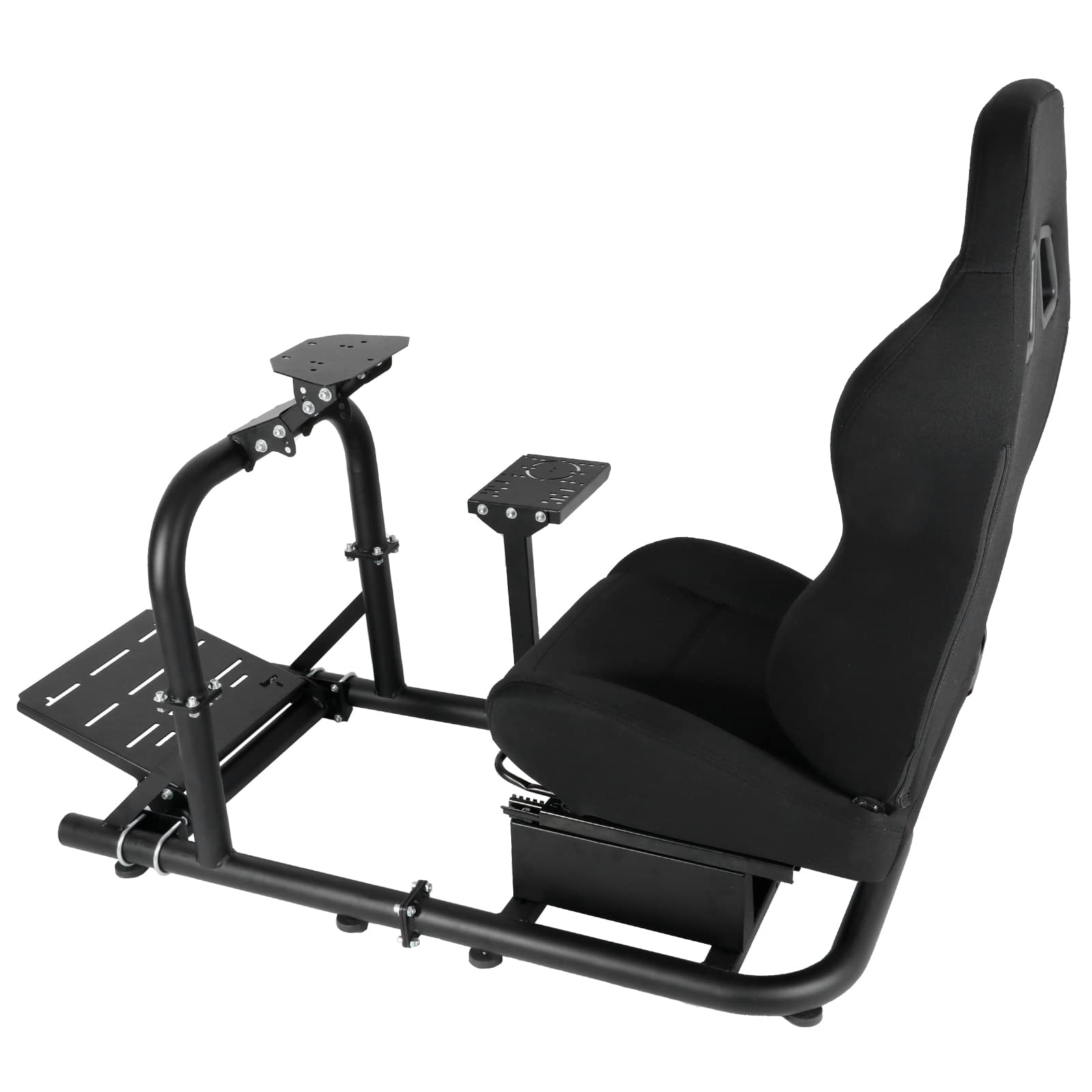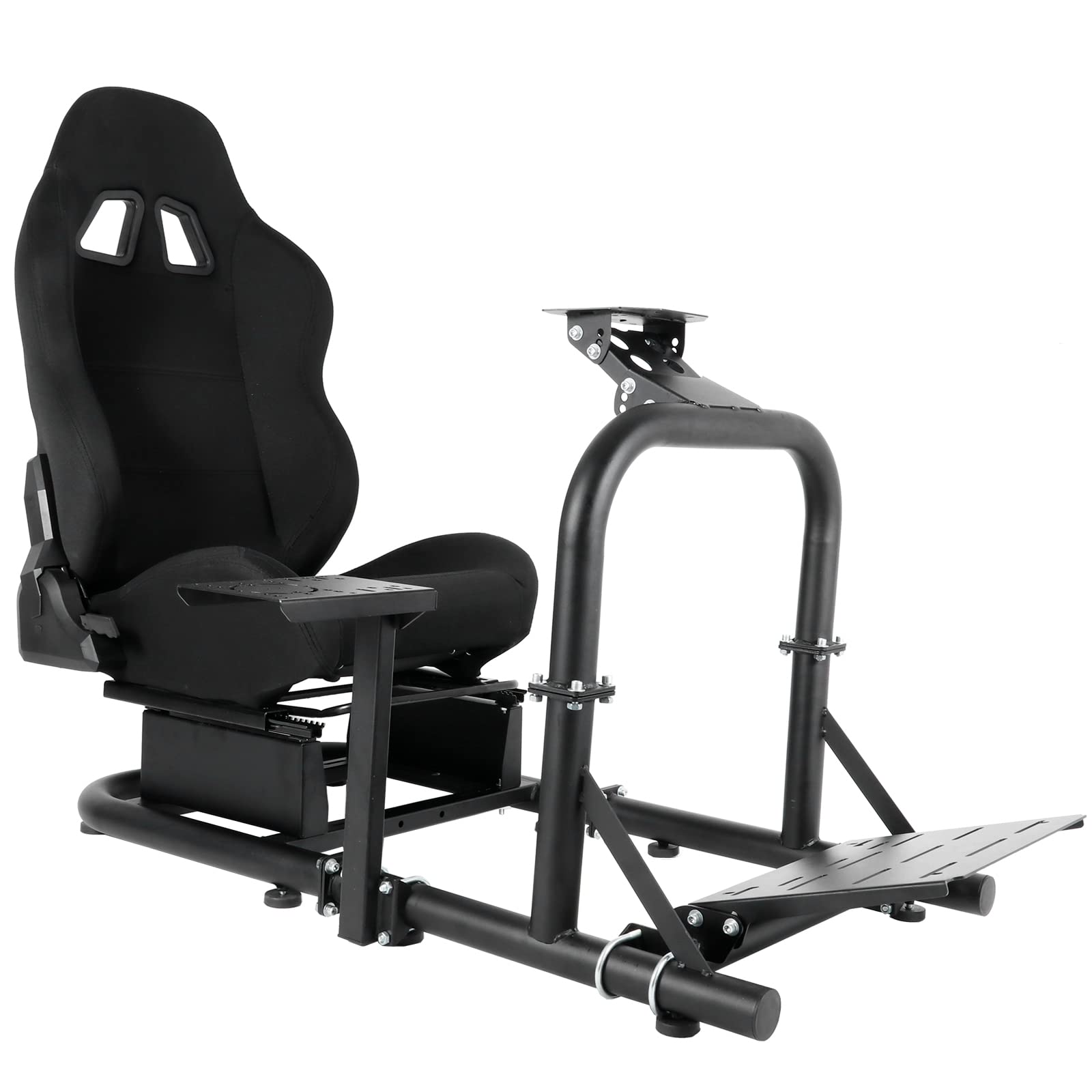 Upgrade Racing Simulator Cockpit Stand with Black Racing Seat fit for Logitech G27 G29 G923, Thrustmaster, Fanatec, Adjustable Wheel Stand,Handbrake&Shifter&Wheel&Pedal Not Included
